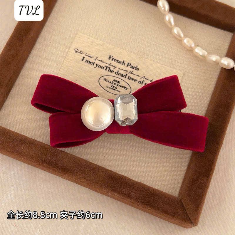 1 Kẹp nơ nhung trai đá đỏ đen