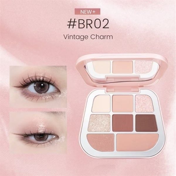 Gồm 8 ô màu: kết hợp cả nhũ – lì – ánh kim, đủ dùng cho makeup mắt từ nhẹ nhàng đến cá tính.