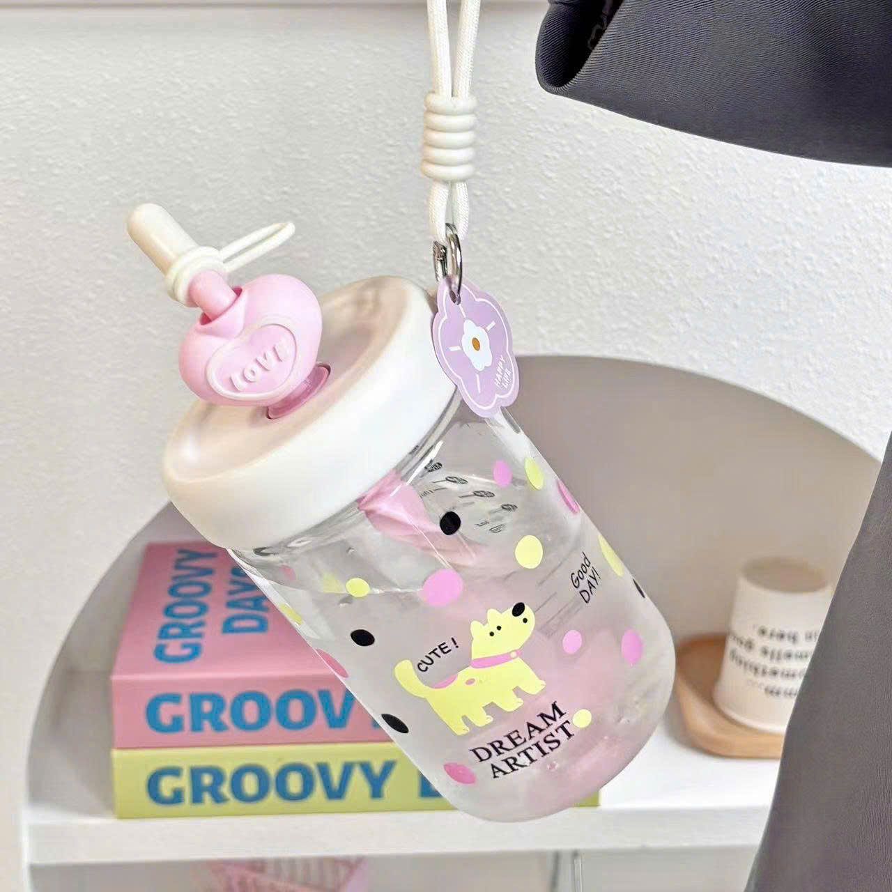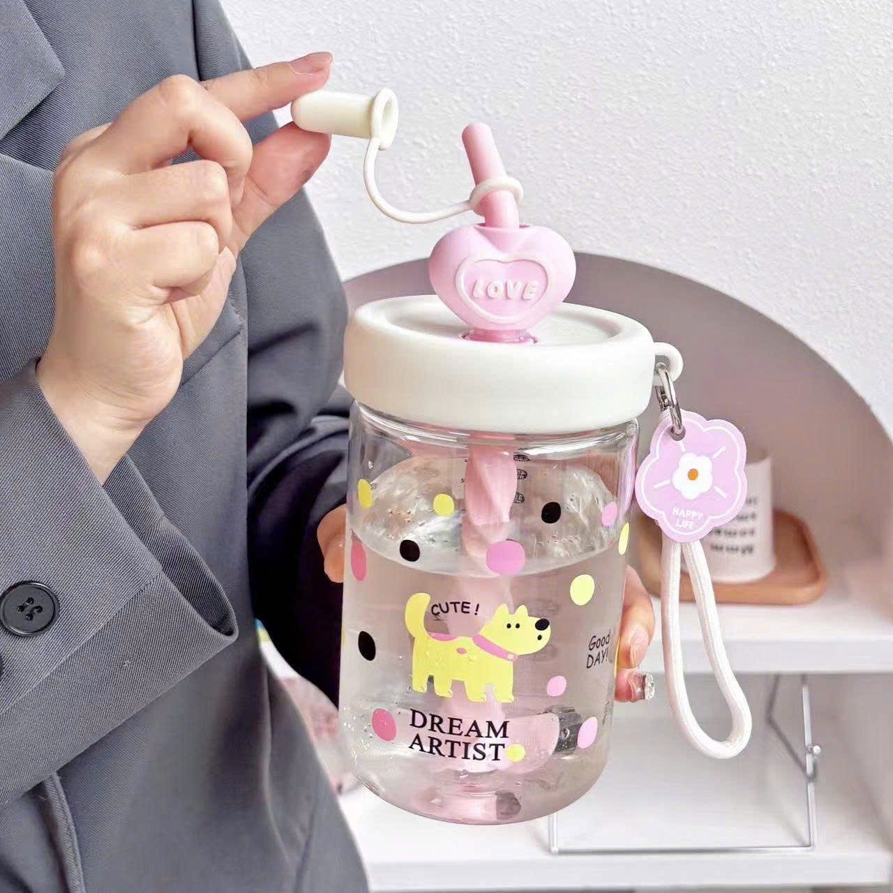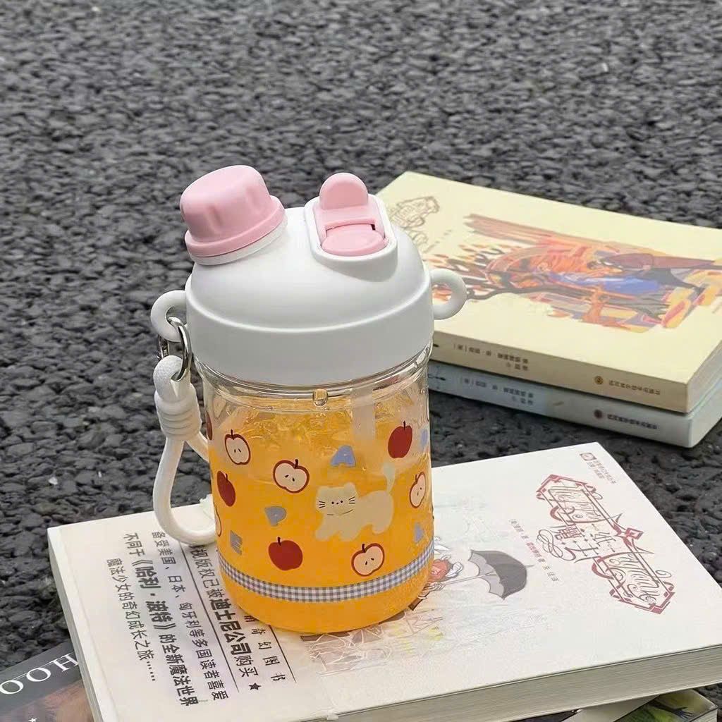 Bình nước nhựa 2 nắp mèo quả táo