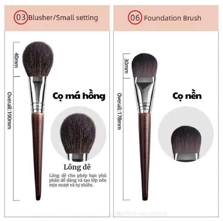 ✔️ Đầu lông siêu mảnh giúp lấy phấn chắc, đưa mỹ phẩm thẩm thấu sâu vào lớp biểu bì- Cán cọ bằng gỗ mộc, đầm tay, chắc chắn, chống trơn trượt khi thao tác.