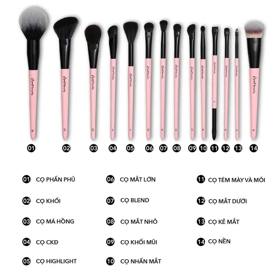 [Bộ cọ MUA.s Beauty 14 cây] Bộ cọ MUAs Beauty 14 cây thân hồng chất lông mền mịn sang chảnh phù hợp makeup cá nhân