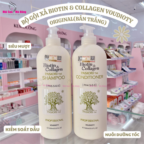 Bộ dầu gội và xả phục hồi tóc hư tổn Biotin and Collagen Voudioty Trắng 2x1000ml