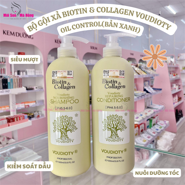 Bộ đôi gội xả phục hồi và kiểm soát dầu Biotin & Collagen Voudioty 2 chaix1000ml