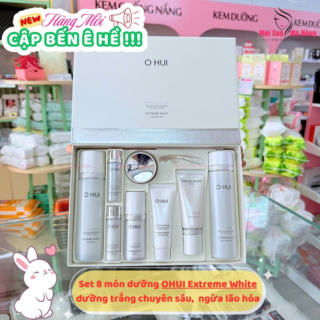 – Tinh chất OHUI Extreme White Serum (20ml): Cải thiện làn da tối màu trở nên sáng trong, điều trị mọi vấn đề về da, thu nhỏ lỗ chân lông rộng. Chống lão hóa, xóa bỏ nếp nhăn. Ngăn ngừa các dấu hiệu của tuổi tác.
