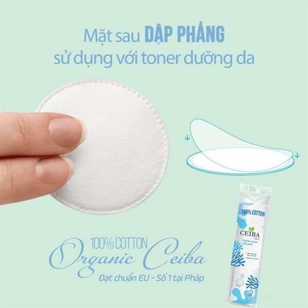 Bông Tẩy Trang Ceiba 100% Chất Liệu Cotton của Pháp, công nghệ Ultra Boost giúp tiết kiệm đến 50% dung dịch dưỡng da với nguyên liệu 100% cotton từ cánh đồng hữu cơ đạt chuẩn Châu Âu đầu tiên trên thế giới giúp làm sạch lớp trang điểm bụi bẩn trên da một cách nhẹ nhàng, mặt bông mềm mại giảm ma sát bảo vệ da tránh tổn thương, chà xát.