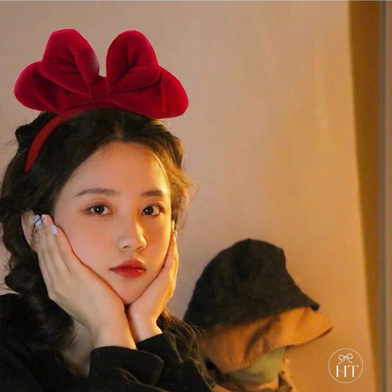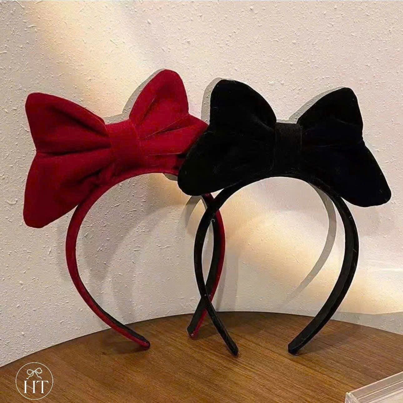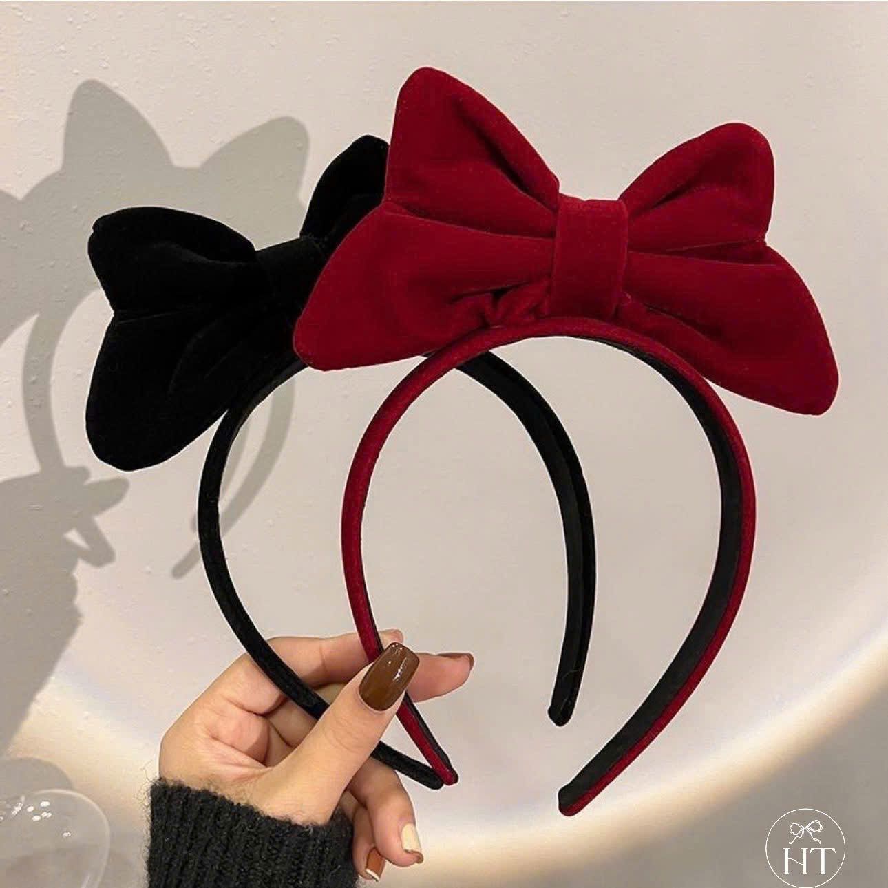 Cài nơ nhung to đỏ đen