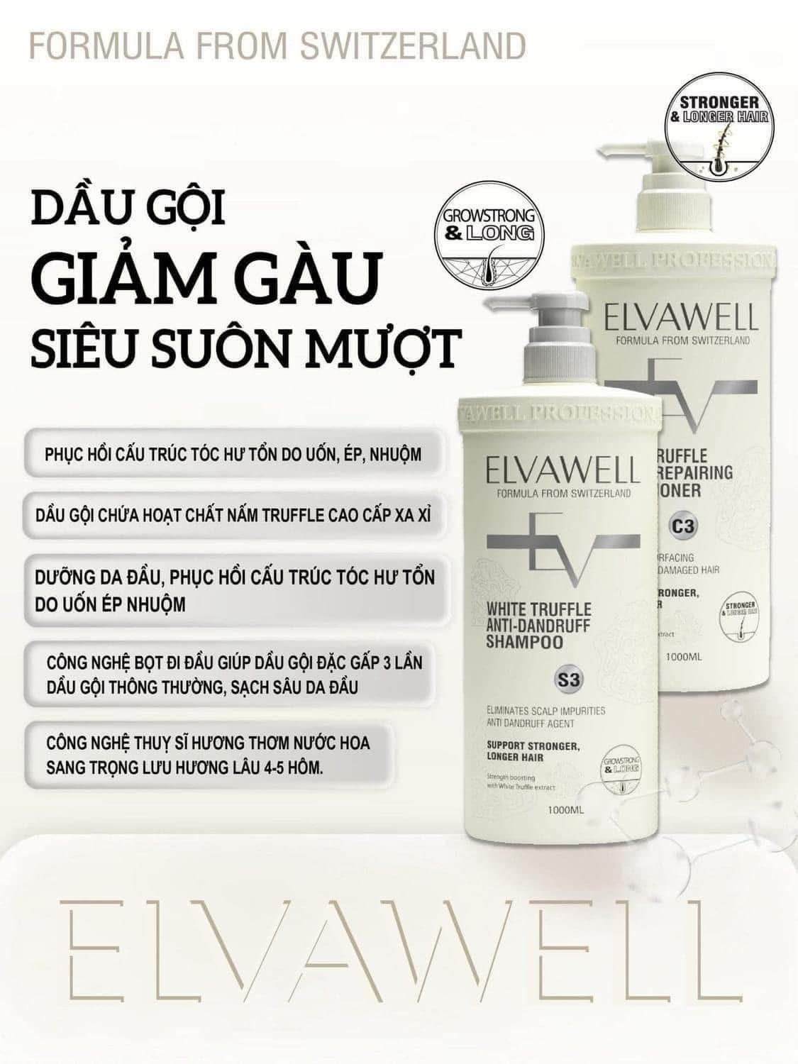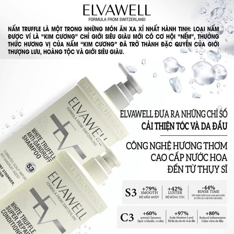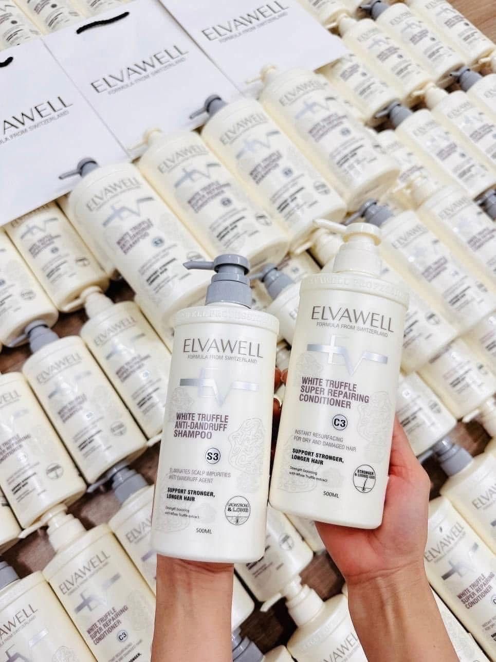 Cặp Dầu Gội Elvawell Màu Trắng Giảm Gàu Siêu Suôn Mượt - (MÀU TRẮNG)/ 1000ml