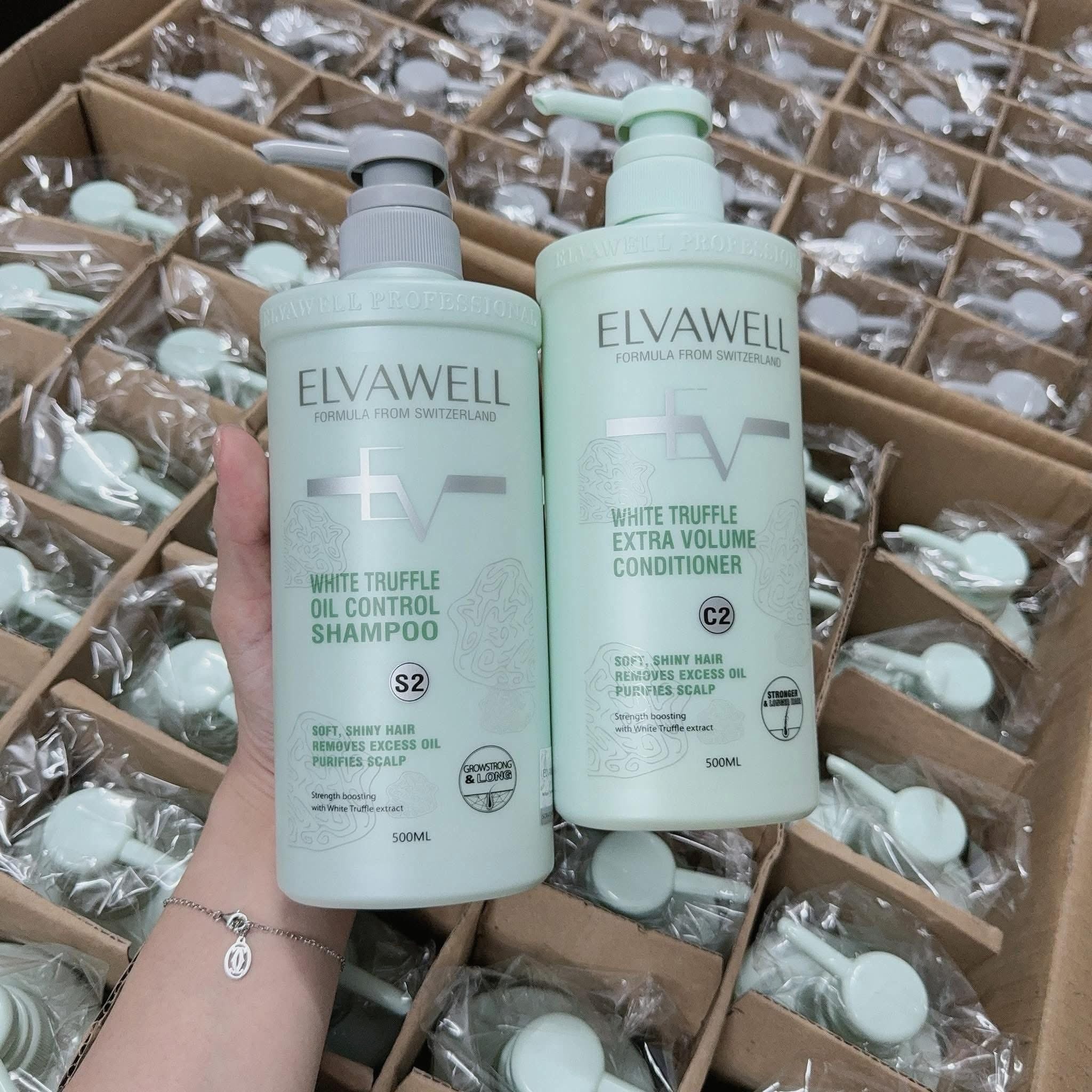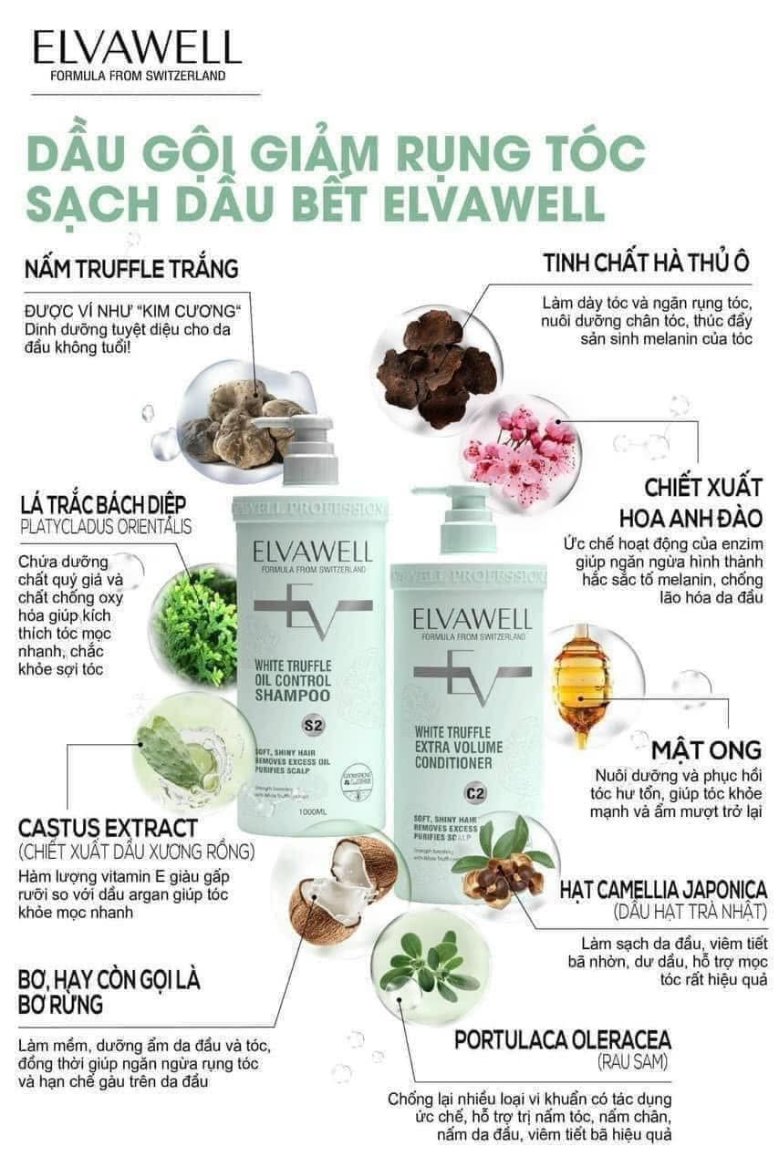 Dầu gội xả phục hồi tóc hư tổn Elvawell White Trufle Repair (Màu Xanh)