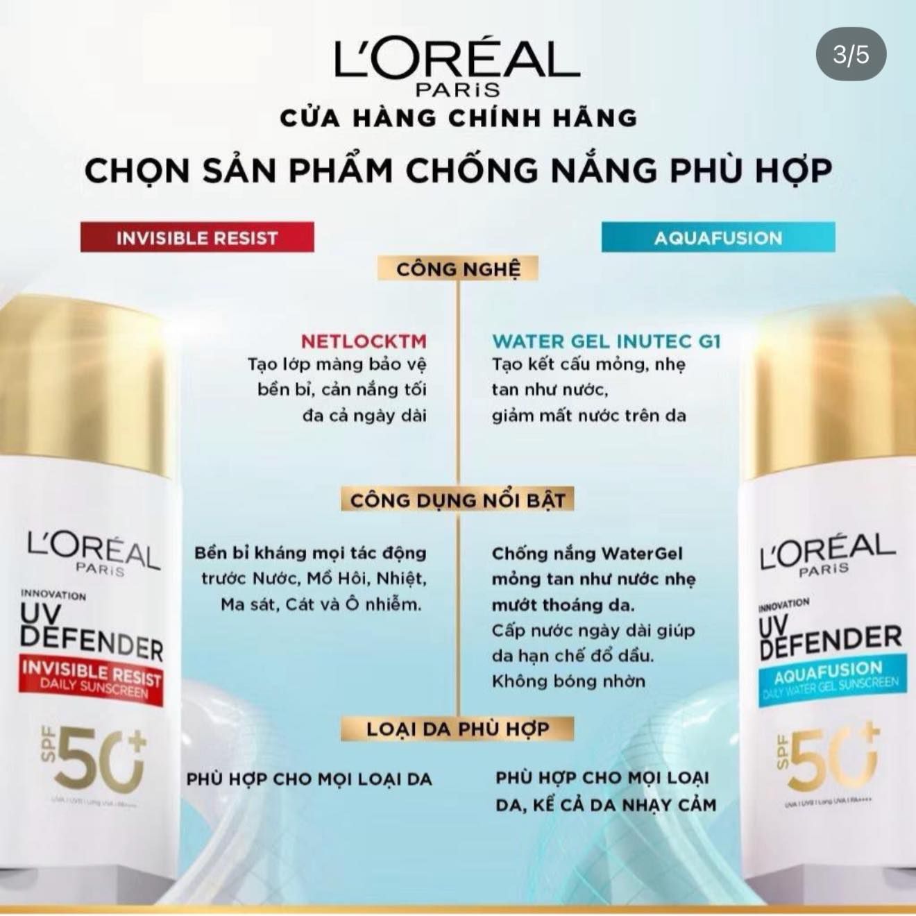 Chống Nắng Phổ Rộng Loreal Paris Water Gel UV Defender Aquafusion Daily Water Gel Sunscreen SPF 50+ PA++++ 60Ml