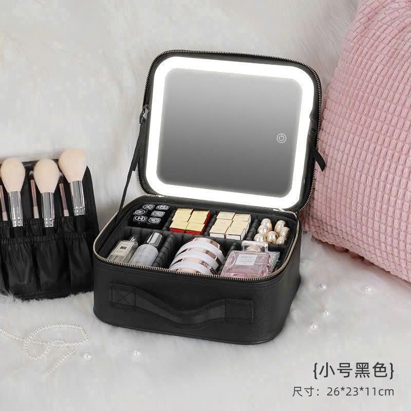 Cốp Đựng Đồ Trang Điểm Đèn Led Kèm Gương 26*23*11cm