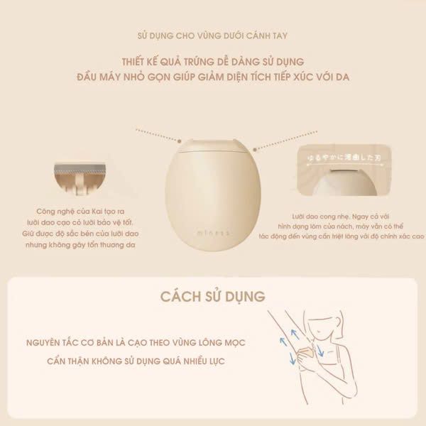 + Dùng để cạo lông vùng da dưới cánh tay.
