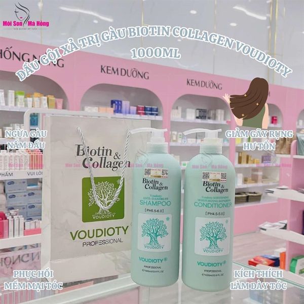 Dầu Gội Xả Phục Hồi, Ngăn Gàu Biotin & Collagen Voudioty 1000ml Xanh Ngọc