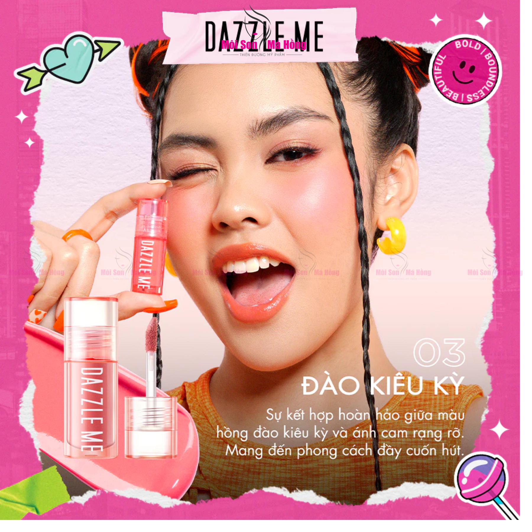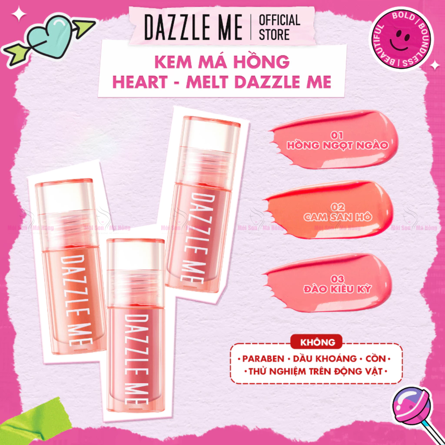Kem má hồng DAZZLE ME có kết cấu dạng kem lỏng, nhẹ và mềm mịn, cho lớp finish hồng hào và bền màu lên đến 10 giờ.