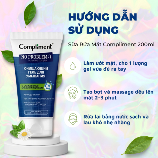 Gel Rửa Mặt Compliment No Problem Salicylic Acid & Zinc có thành phần hoạt chất Salicylic Acid (BHA) có khả năng làm sạch sâu, điều tiết tuyến dầu, se khít lỗ chân lông, giảm và ngừa mụn một cách hiệu quả, giúp làn da sáng mịn, đều màu, căng bóng. Sản phẩm có mùi thơm dễ chịu, nhẹ nhàng.