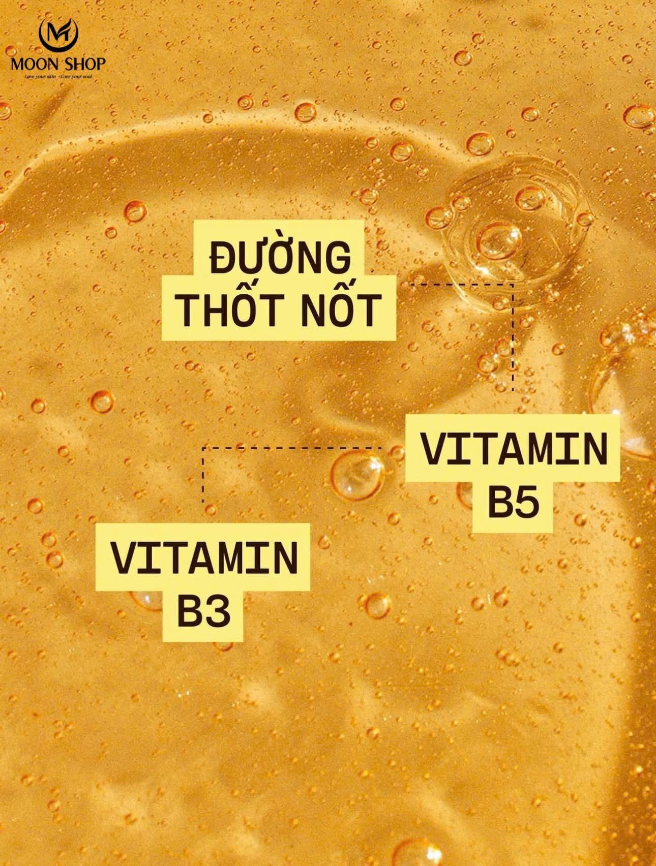 - Vitamin B3 (Niacinamide): Duy trì hàng rào lipid, cải thiện xỉn màu, làm đều màu da.