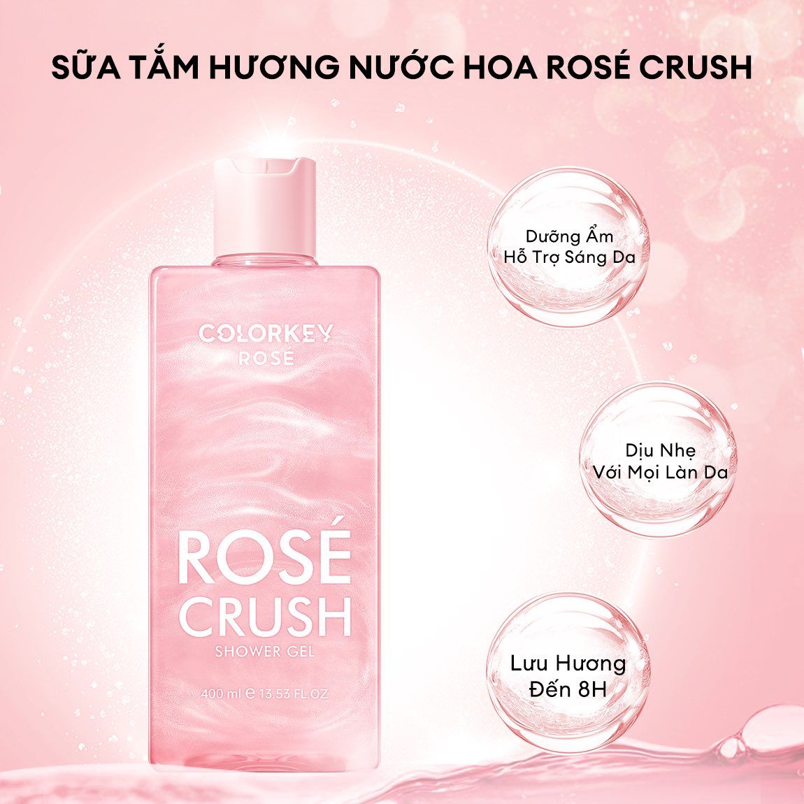 - Gel Tắm Colorkey Rosé Crush Shower Gel Hương Hoa Hồng giúp làm sạch làn da hiệu quả mà vẫn duy trì độ mềm mại, sáng mịn và lưu hương suốt nhiều giờ.