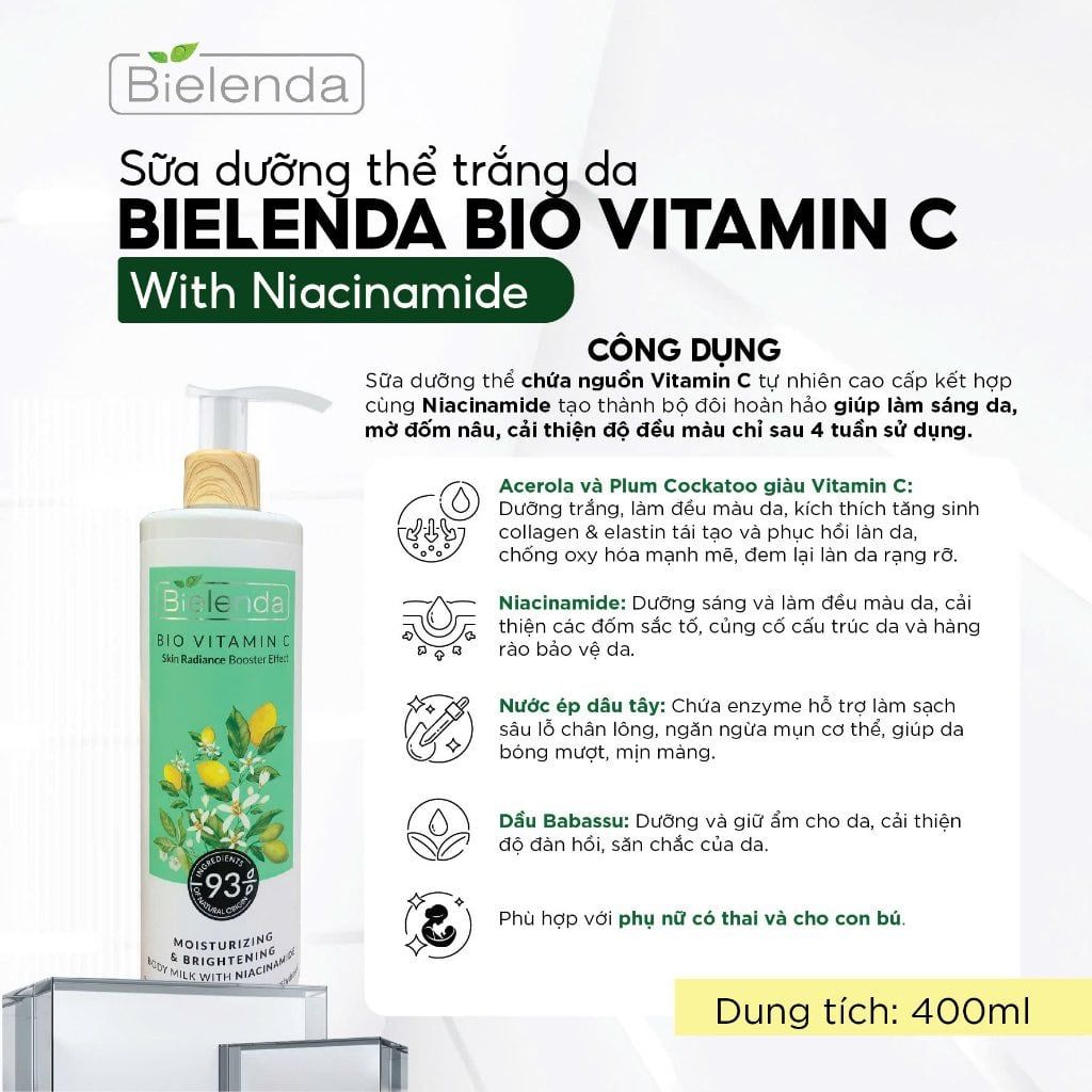 [Hàng Công Ty] BIELENDA Bio Vitamin C Moisturizing & Brightening Body Milk With Niacinamide Sữa Dưỡng Thể - 400ml