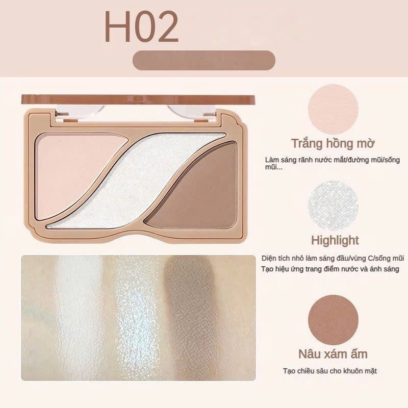 HOLD LIVE - Bảng phấn tạo khối highlight 3 ô Hold Live Shading HL754