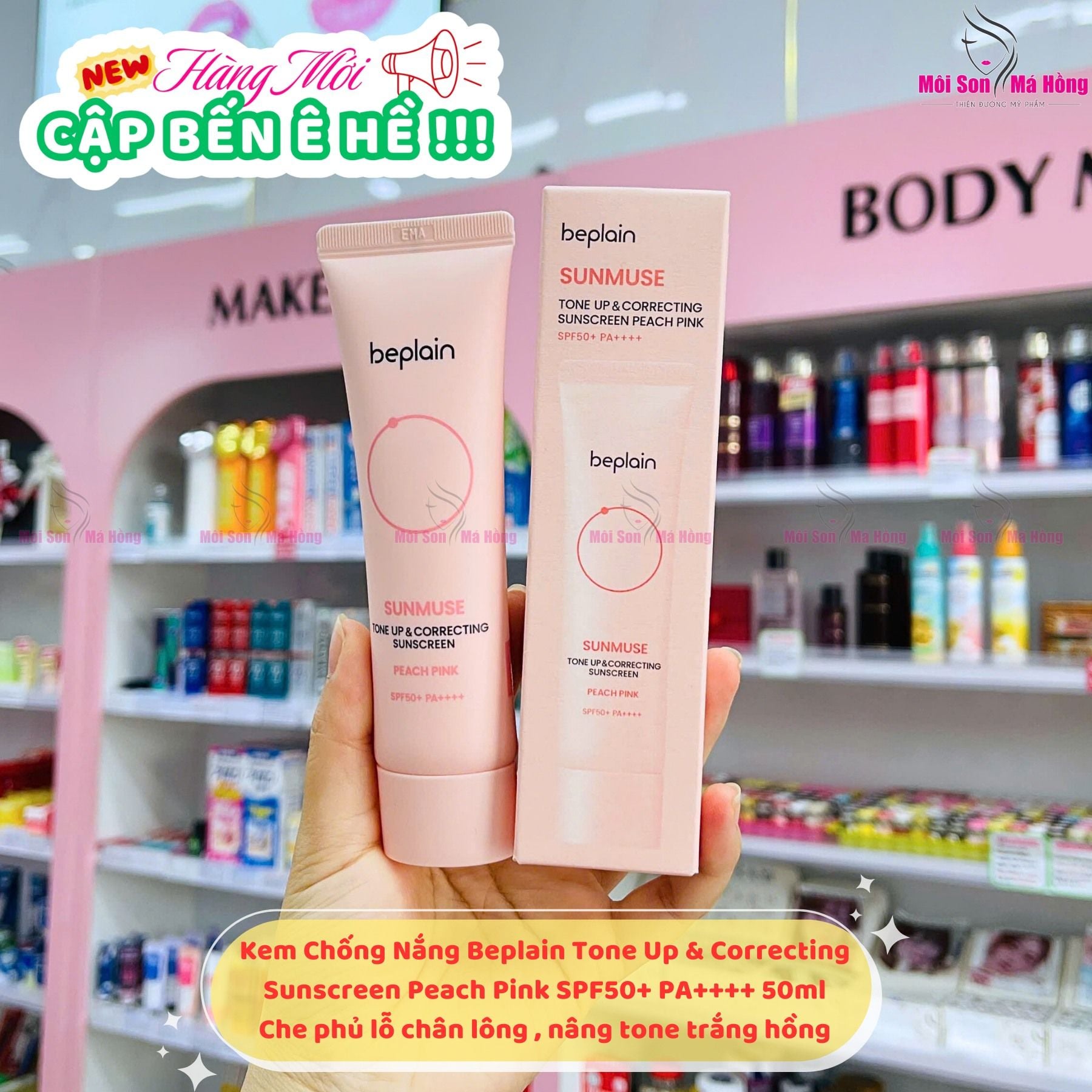 - Kem Chống Nắng Beplain Tone Up&Correcting Sunscreen Peach Pink là dòng chống nắng nâng tông tự nhiên đến từ thương hiệu Beplain – nổi tiếng với các sản phẩm thuần chay, lành tính và an toàn cho da nhạy cảm. Công thức chống nắng lai hiện đại giúp bảo vệ da toàn diện trước UVA – UVB, đồng thời tạo hiệu ứng tone-up hồng đào trong trẻo, giúp da sáng mịn và rạng rỡ ngay sau khi thoa.
