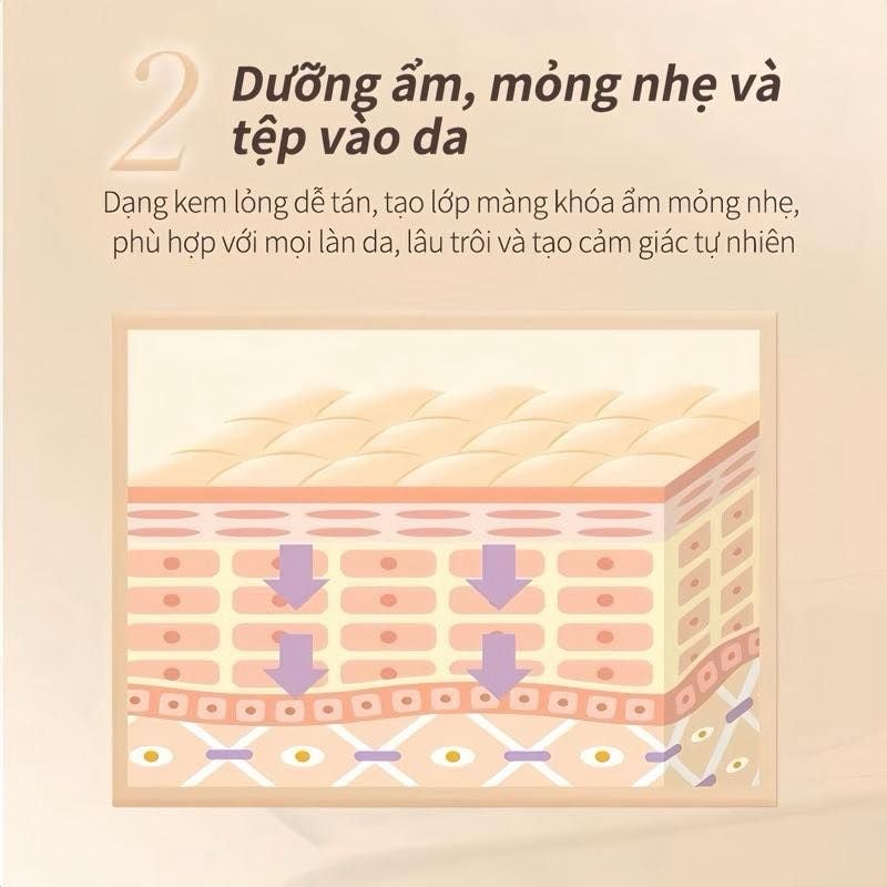 Kết cấu kem siêu mịn với hạt phấn chỉ 0.2 micron giúp tiệp da hoàn hảo, dễ dàng làm đều màu và làm sáng những vùng như quầng thâm, rãnh cười hay mụn đỏ mà vẫn tự nhiên. Đồng thời, bảng thành phần còn bổ sung Squalane, Glycerol, Panthenol và các chiết xuất từ rau má, hoa cúc giúp dưỡng ẩm, làm dịu và nuôi dưỡng làn da mỗi khi sử dụng.