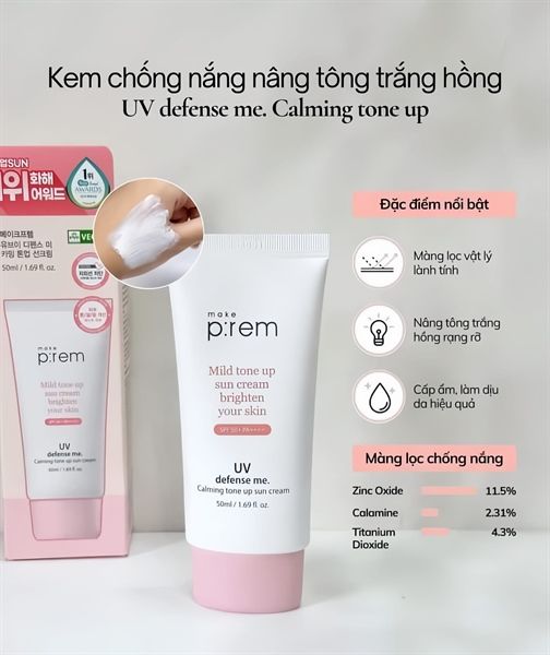 Kem Chống Nắng Make p:rem Vật Lý Nâng Tông Da 50ml UV Defense Me. Calming Tone Up Sun Cream SPF50+ PA++++