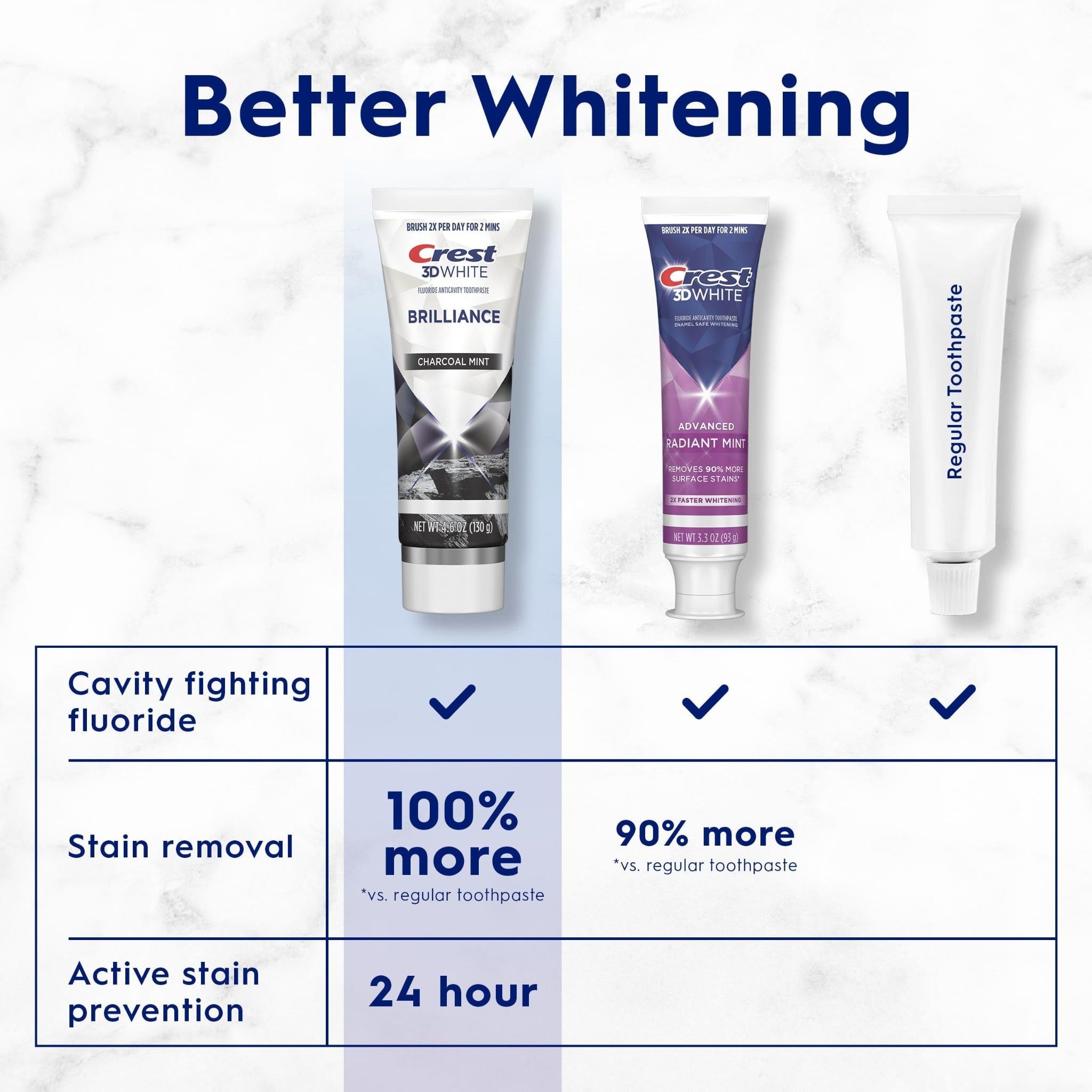 Kem đánh răng Crest 3D White Brilliance Vibrant Peppermint giúp làm trắng răng hiệu quả, loại bỏ các vết ố bề mặt do cà phê, trà hoặc thực phẩm gây ra. Công thức làm trắng tiên tiến của Crest giúp răng sáng hơn theo thời gian khi sử dụng đều đặn mỗi ngày, đồng thời mang lại hơi thở thơm mát với hương bạc hà the mát.