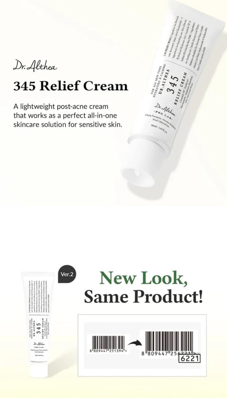 - 345 Relief Cream gần đây đang nổi lên như một hiện tượng của giới mỹ phẩm, xuất hiện trên nhiều clip review hàng triệu lượt xem trên MXH. Dòng kem dưỡng đến từ thương hiệu dược mỹ phẩm Top 5 Hàn Quốc - Dr.Althea có tác dụng như 1 dòng kem dưỡng ẩm đa chức năng. Đặc biệt, bên cạnh khả năng skincare, 345 Relief Cream còn được tiết lộ là loại dưỡng ẩm "bí mật" apply trước lớp makeup - được các chuyên gia trang điểm sử dụng cho các idol Hàn.
