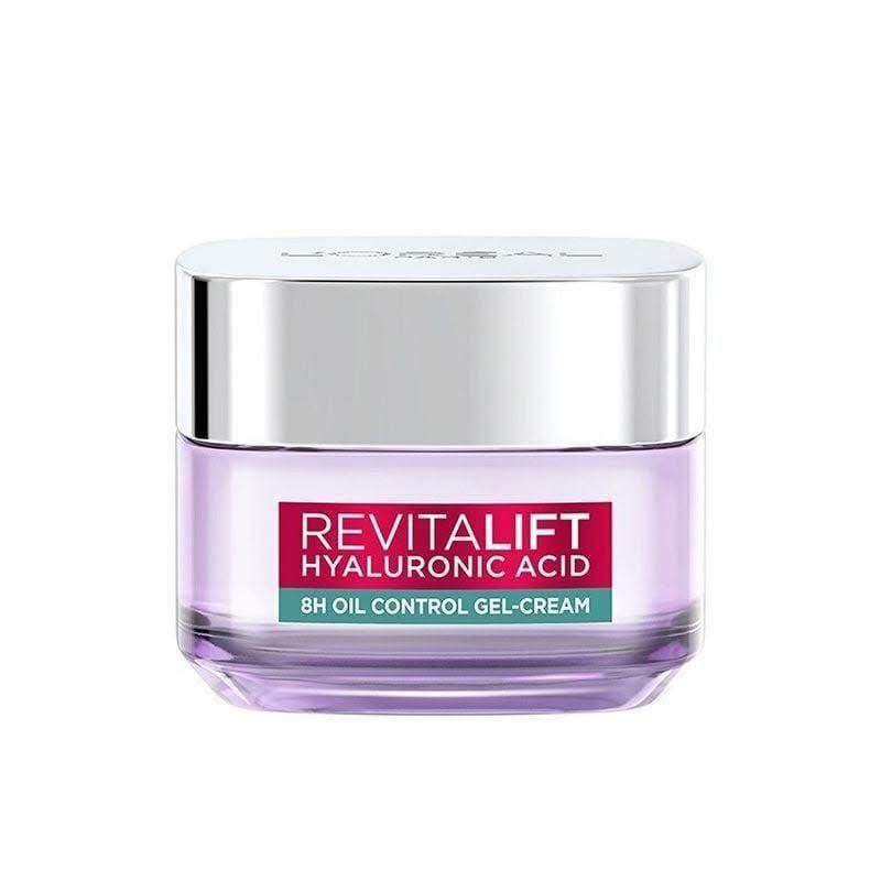 - Kem Dưỡng L'Oreal Revitalift Hyaluronic Acid 8H Oil Control Gel Cream Cấp Ẩm, Kiềm Dầu với công thức chứa thành phần Hyaluronic Acid và Salicylic Acid giúp cung cấp độ ẩm, giảm dầu hiệu quả trong 8H và giúp thu nhỏ lỗ chân lông cho làn da căng mịn, không bóng nhờn.