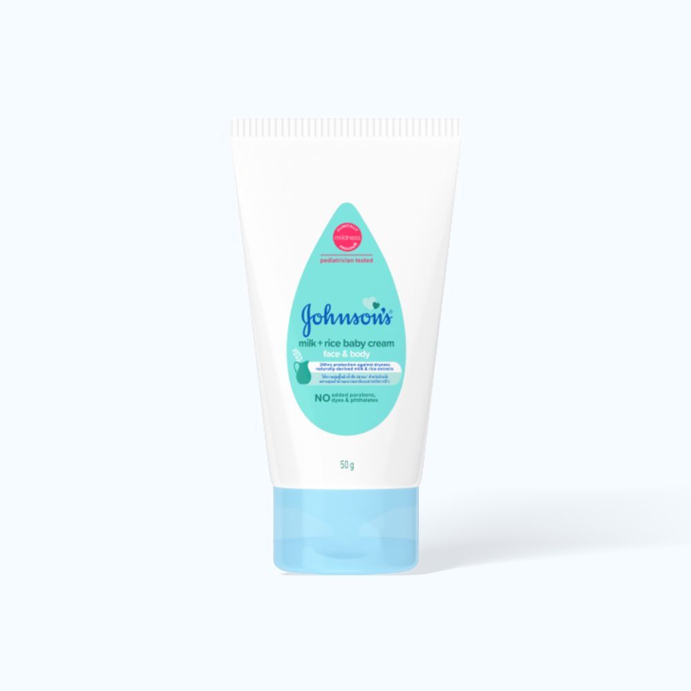 Kem dưỡng thể chiết xuất sữa và gạo Johnsons Baby Milk & Rice Baby Cream là sản phẩm dưỡng ẩm cho mặt và toàn thân đến từ thương hiệu Johnson's Baby của Mỹ, chiết xuất từ 300% tinh chất gạo và sữa cung cấp protein hỗ trợ chăm sóc các tế bào da cho bé, giúp dưỡng ẩm và ngăn ngừa tình trạng nứt nẻ cho mặt, cơ thể và tay cho bé một làn da mềm mại, mịn màng trong suốt 24 giờ.