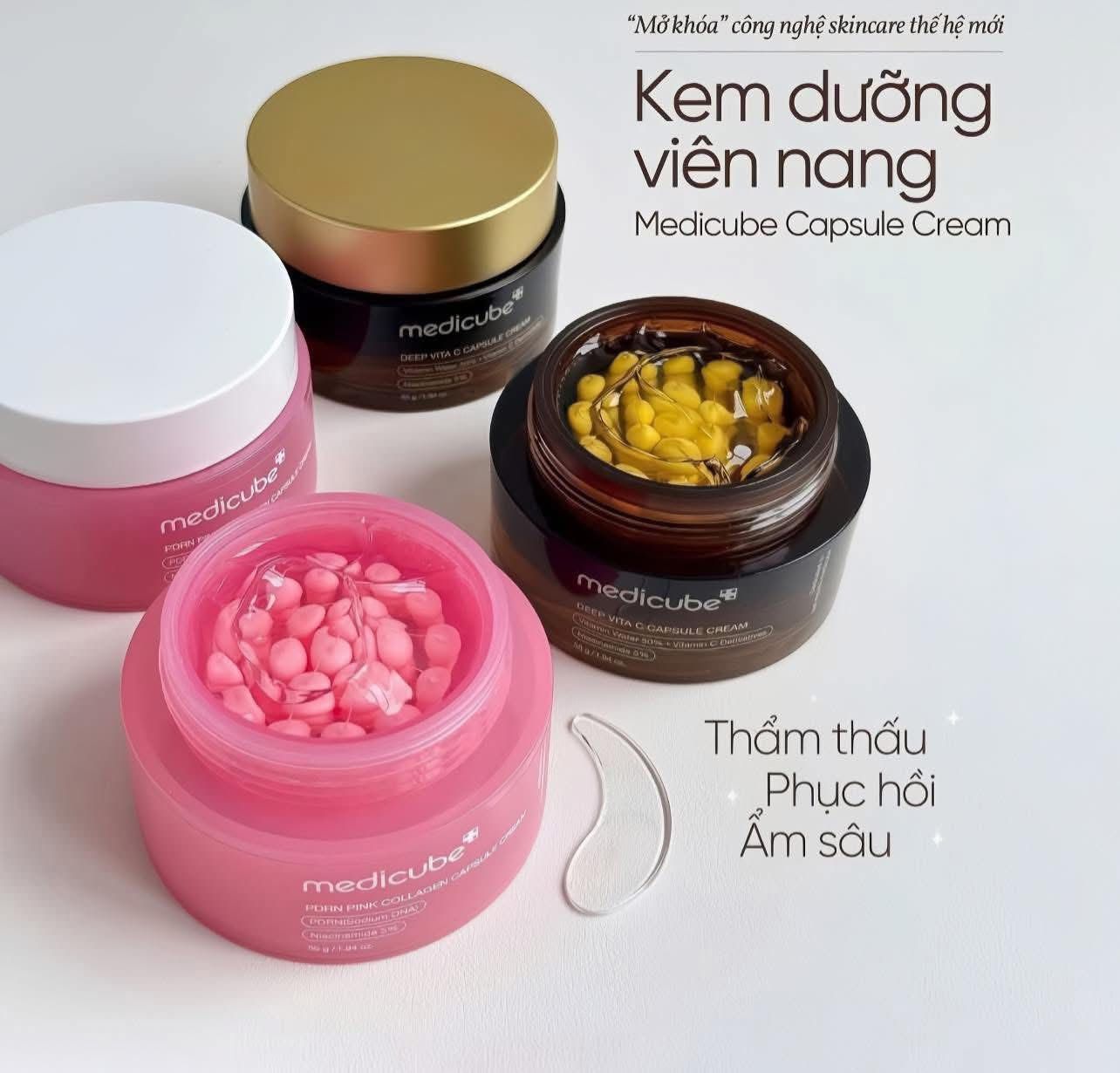 Kem dưỡng viên nang căng bóng da Medicube PDRN Pink Collagen Capsule Cream với công thức độc đáo với các viên nang collagen tan chảy ngay khi thoa, bảo toàn hoàn toàn tinh chất bên trong giúp duy trì hiệu quả làm săn chắc da.