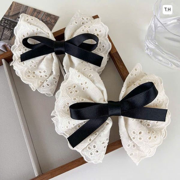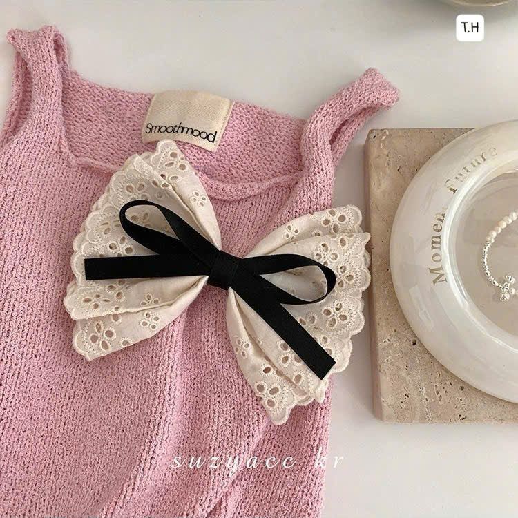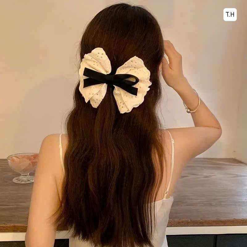 KẸP BẤM nơ ren màu trắng nơ đen