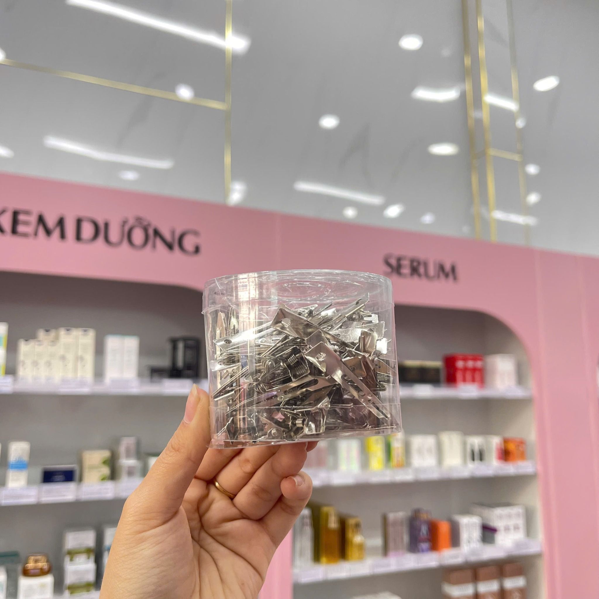 Kẹp mỏ vịt nhỏ và to làm tóc chuyên dụng bằng thép không gỉ chính hãng( hộp tròn)