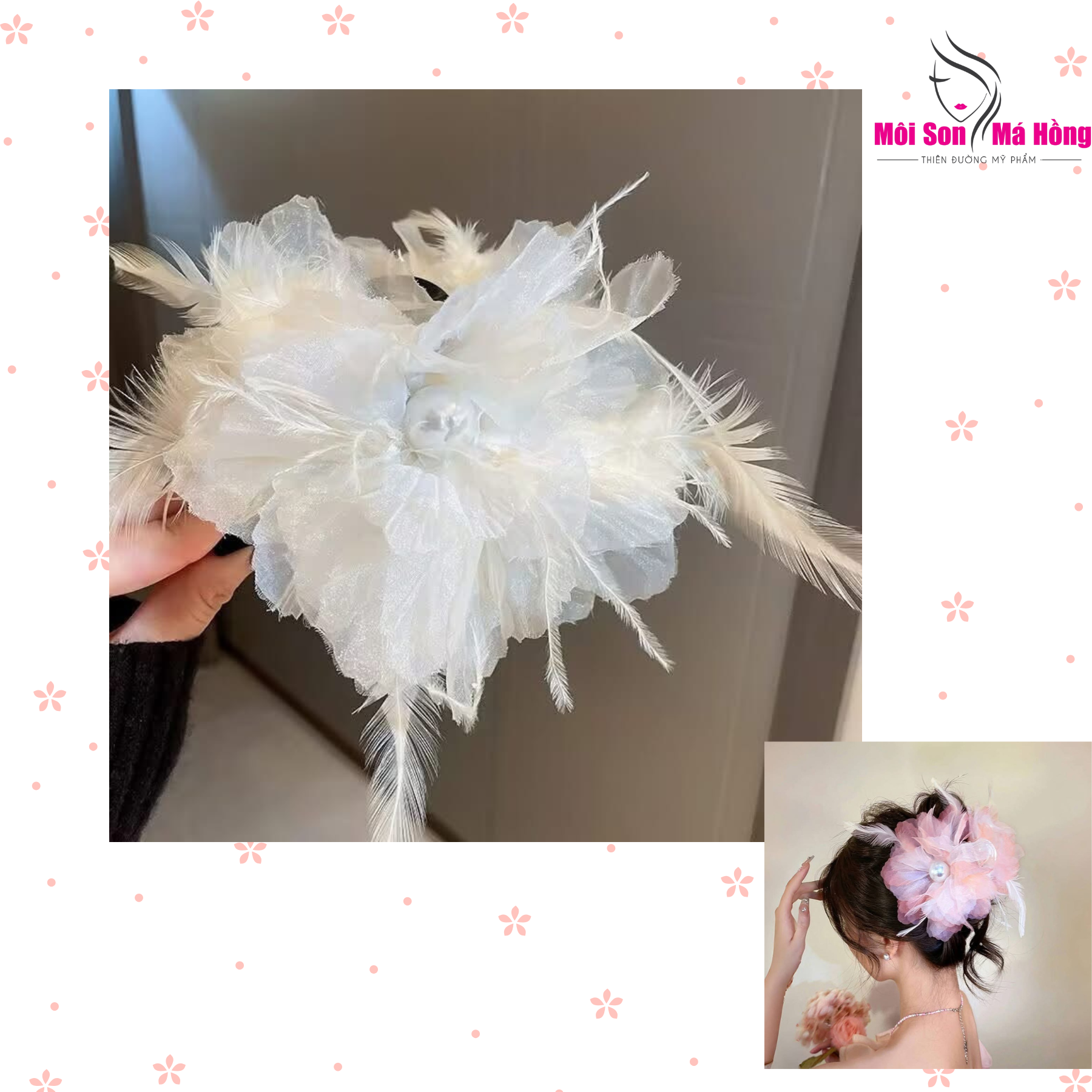 Kẹp tóc lông vũ đính hạt cườm