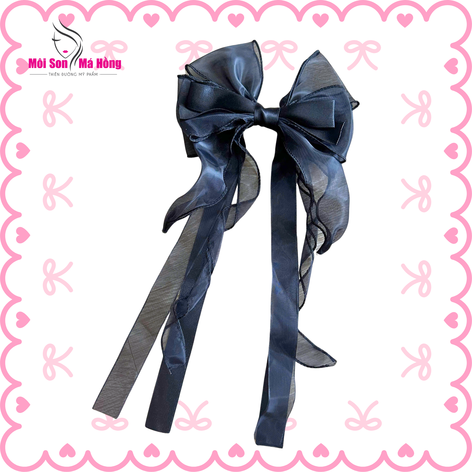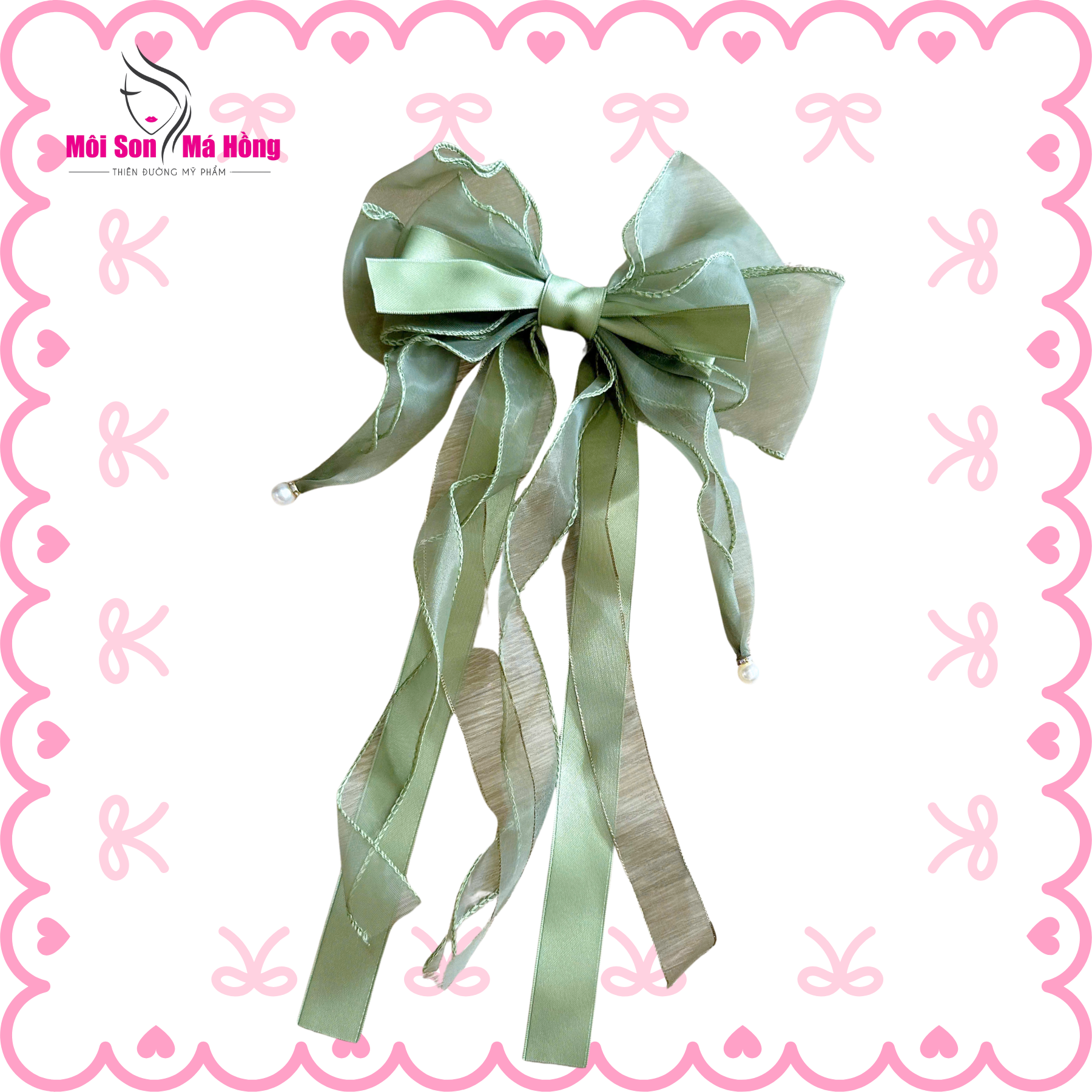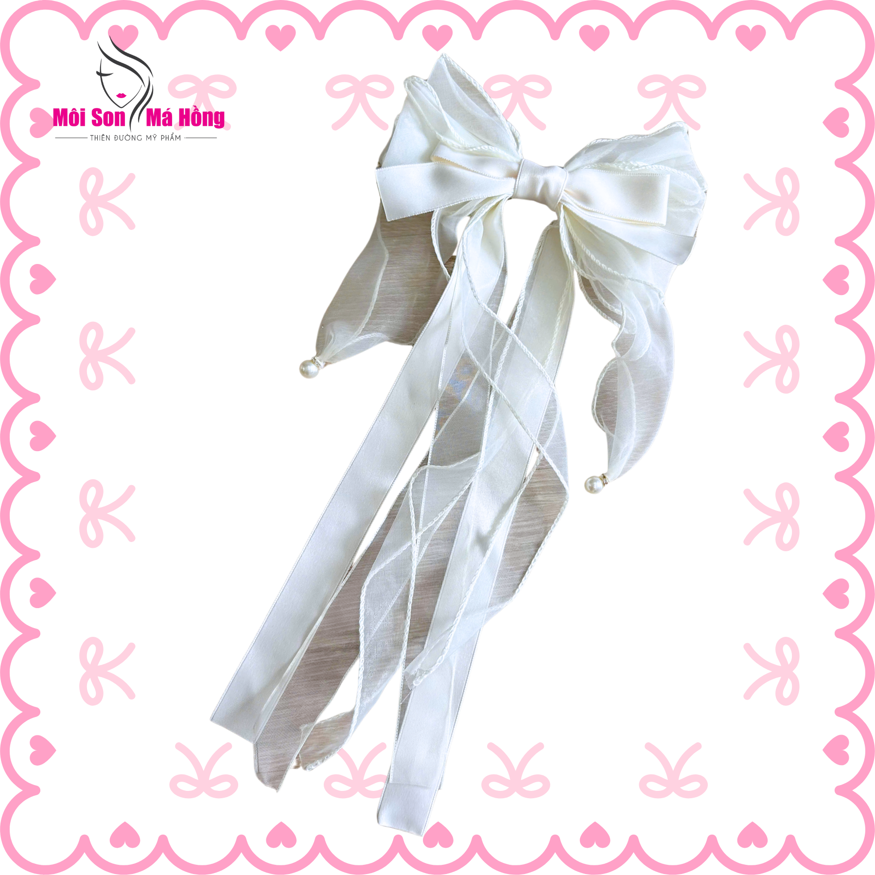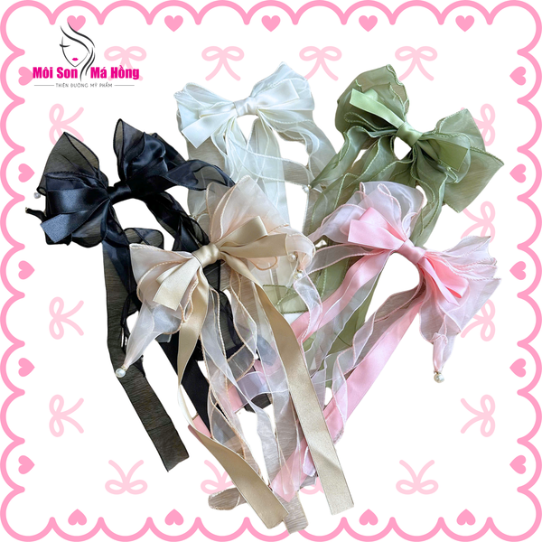 Kẹp tóc nơ tua rua dài đính hạt trai