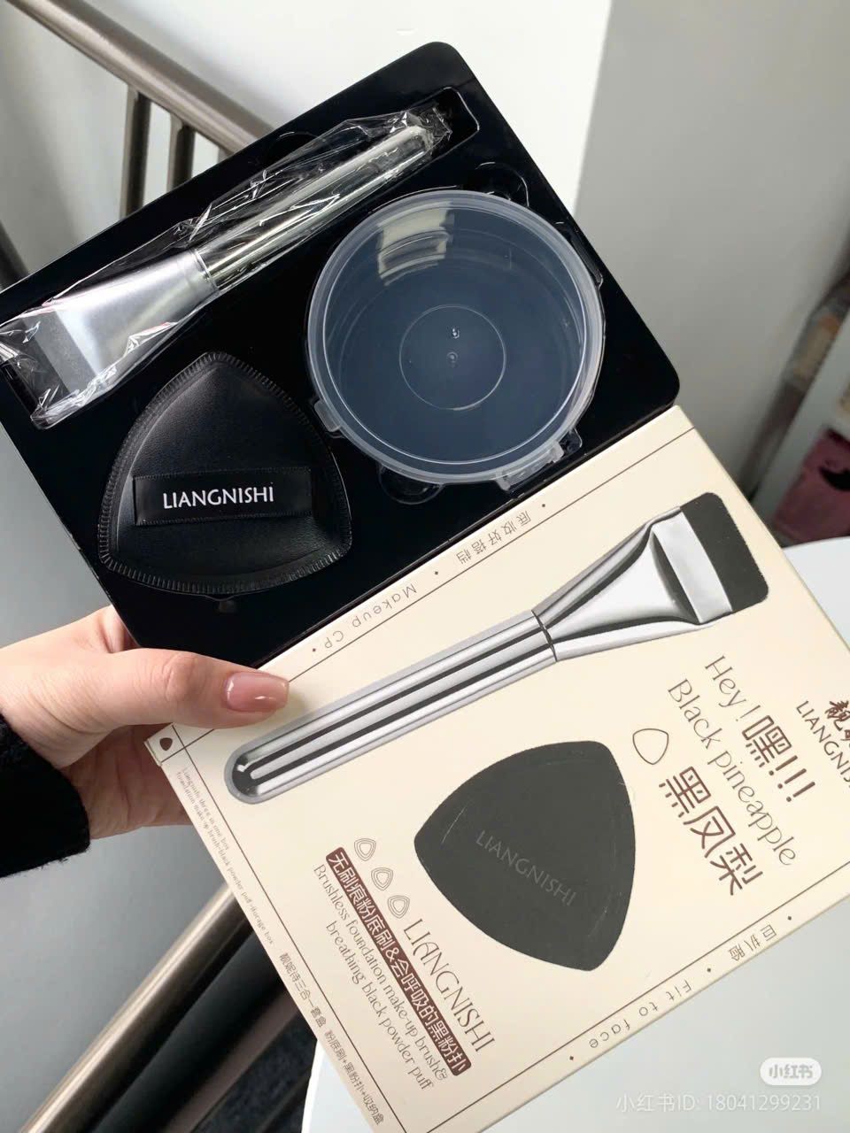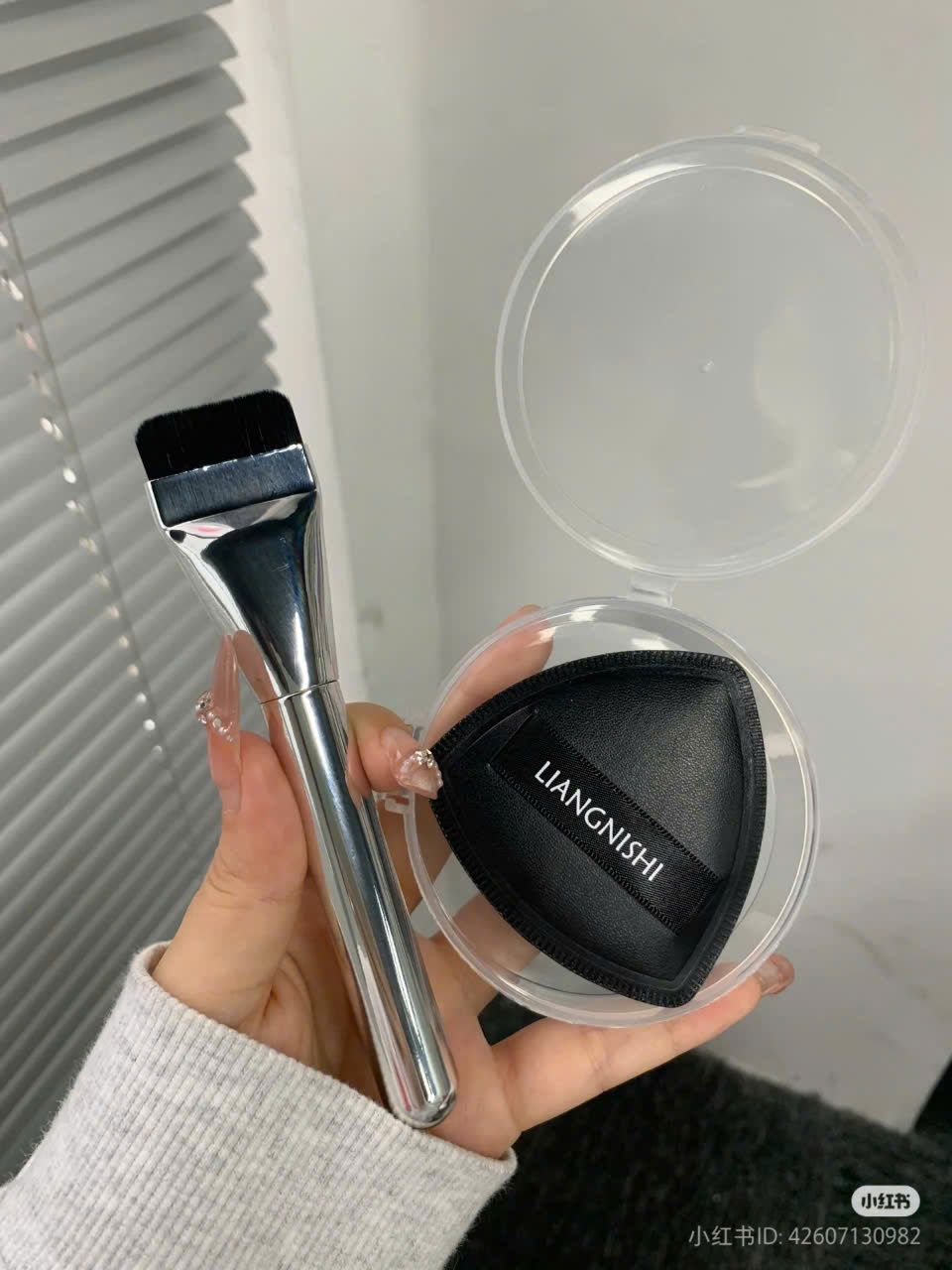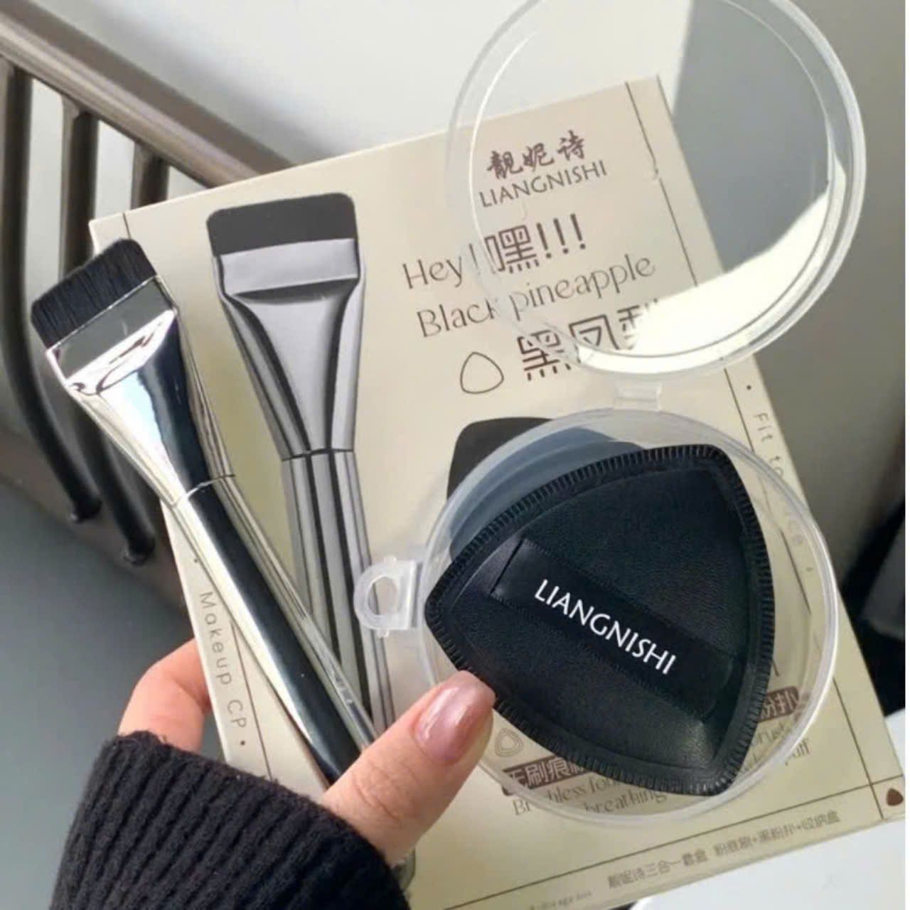 LIANGNISHI Set 3 Trong 1 Cọ, Mút, Hộp Đựng Phấn Phủ Black Pineapple