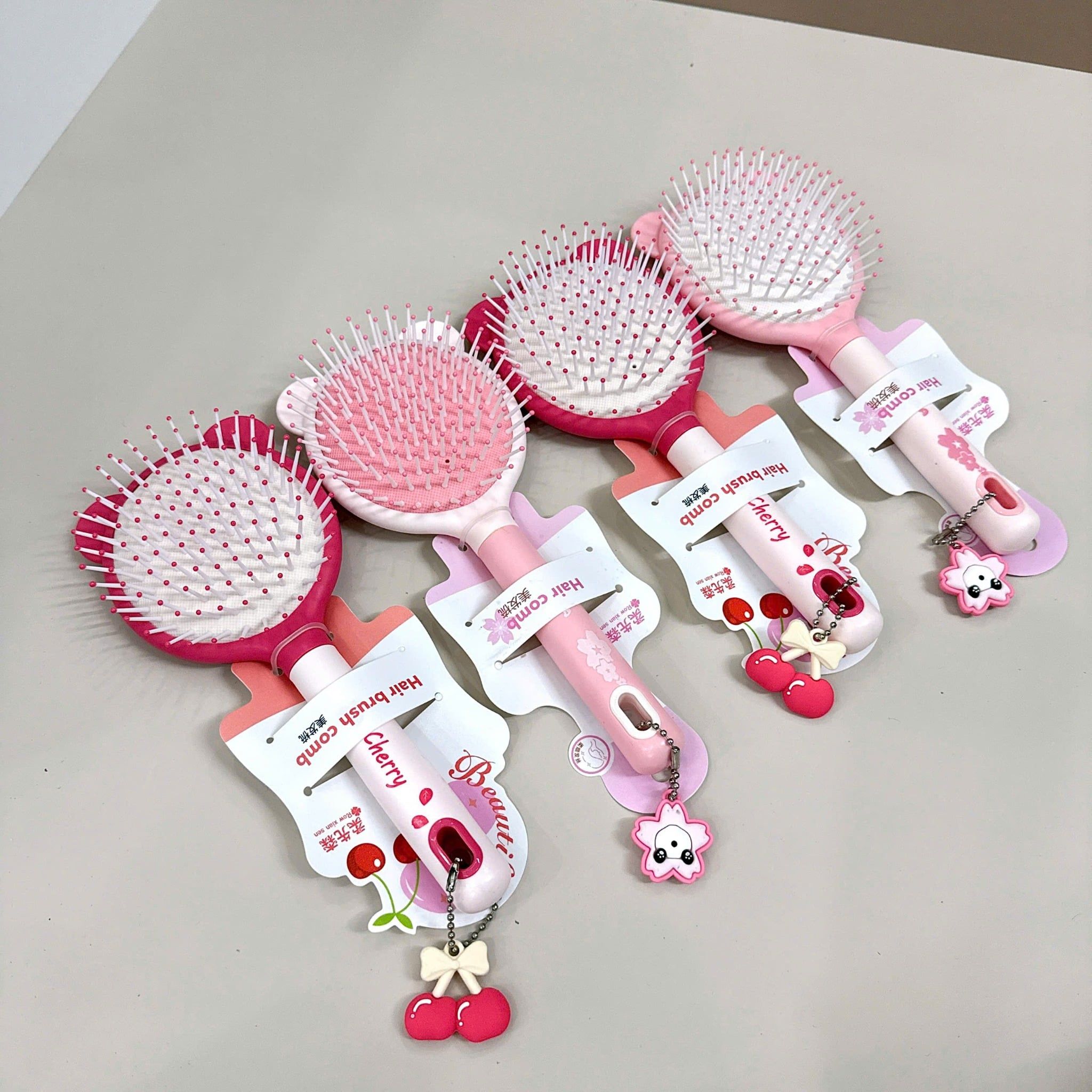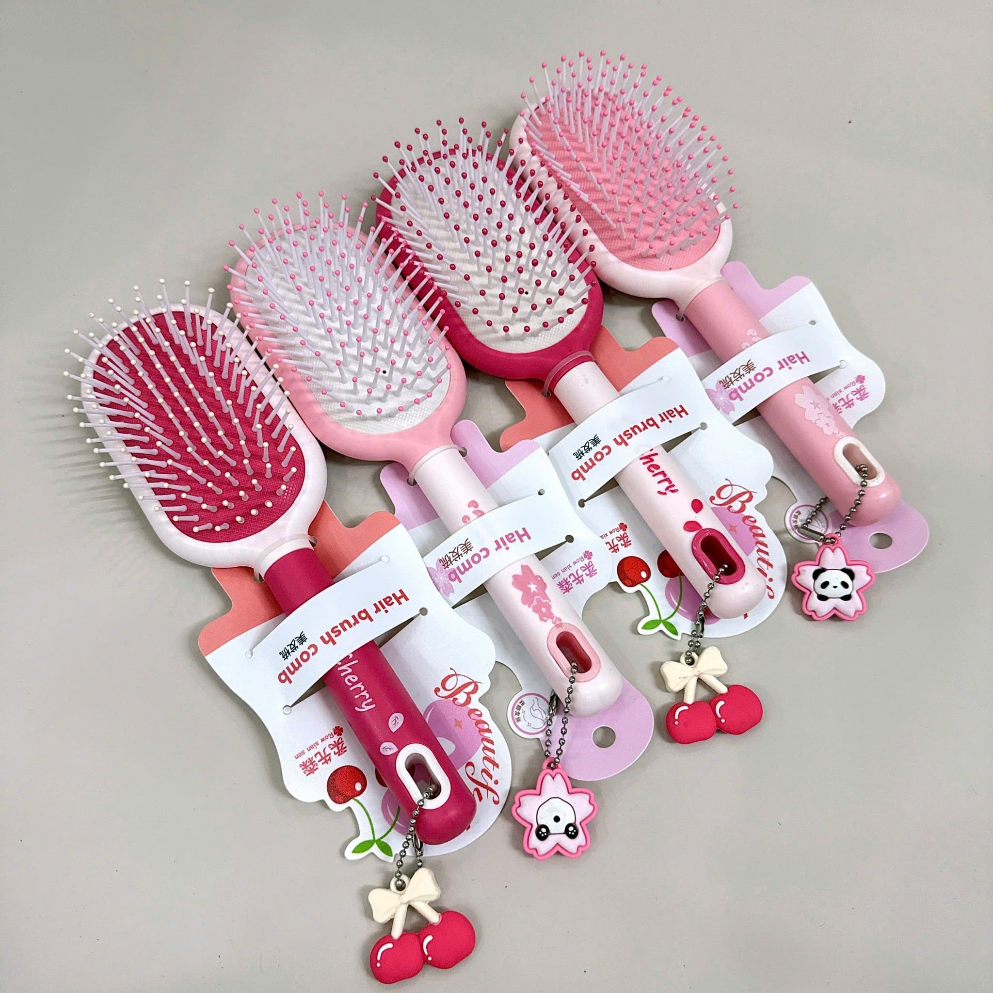 Lược gỡ rối tone hồng móc khoá charm