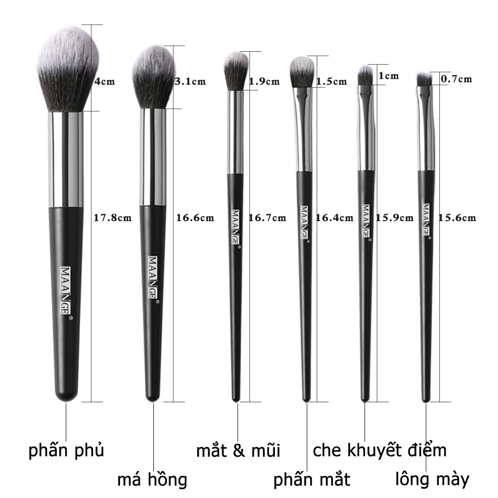 MAANGE Bộ cọ makeup 6 cây cọ phấn phủ, má hồng, che khuyết điểm, màu mắt MAG5728