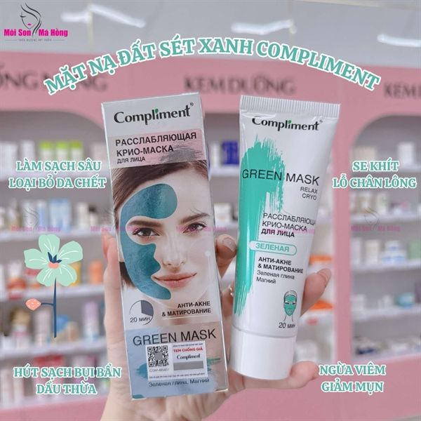 - Mặt Nạ Đất Sét Làm Sạch Sâu Giảm Mụn Se Lỗ Chân Lông Compliment No Problem Green Face Mask có chứa tinh dầu oải hương và bạc hà sẽ giúp tạo cảm giác mát nhẹ trên da, mang lại sự thư giãn, dễ chịu và tươi mát, sạch sẽ cho làn da của bạn.
