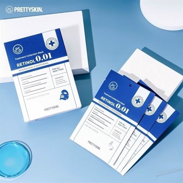 - Mặt Nạ Giấy Prettyskin Treatment Collection Mask - Retinol 0.01với công dụng chính là cung cấp dưỡng chất và làm săn chắc da.
