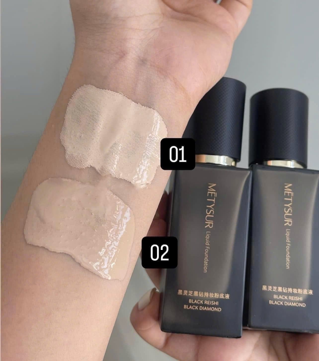 Kem nền METYSUR Black Reishi Black Diamond với công thức đặc biệt chứa chiết xuất nấm Linh Chi Đen, giúp tạo lớp nền mỏng mịn, tự nhiên mà vẫn che phủ tốt. Kết cấu kem lỏng nhẹ, dễ tán, bám da nhanh mà không gây cảm giác nặng mặt hay bí bách. Sản phẩm không chỉ giúp nâng tông và che khuyết điểm mà còn hỗ trợ nuôi dưỡng, làm dịu da trong quá trình sử dụng.