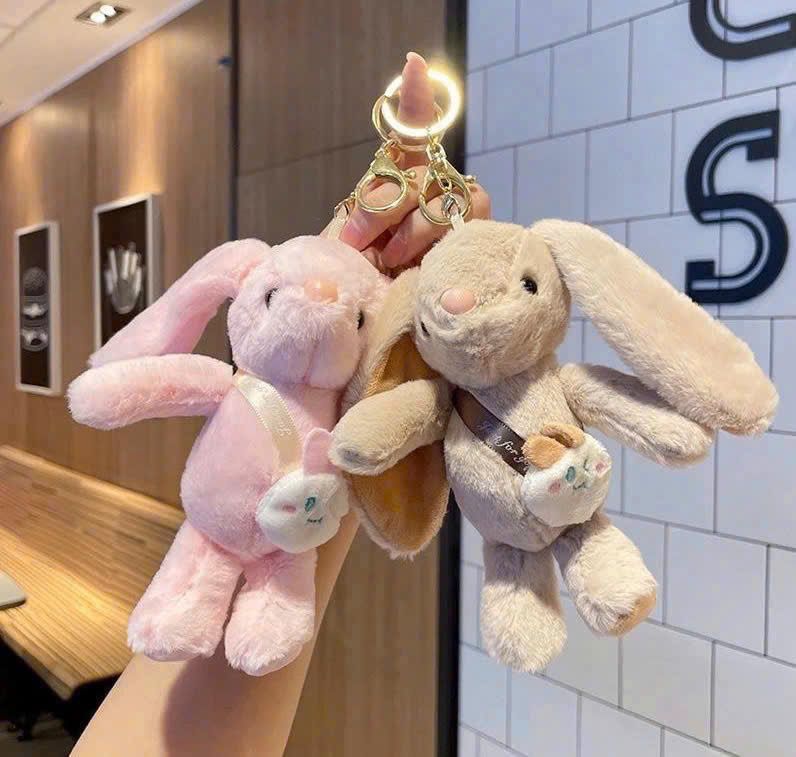 Móc khóa bông thỏ đeo balo