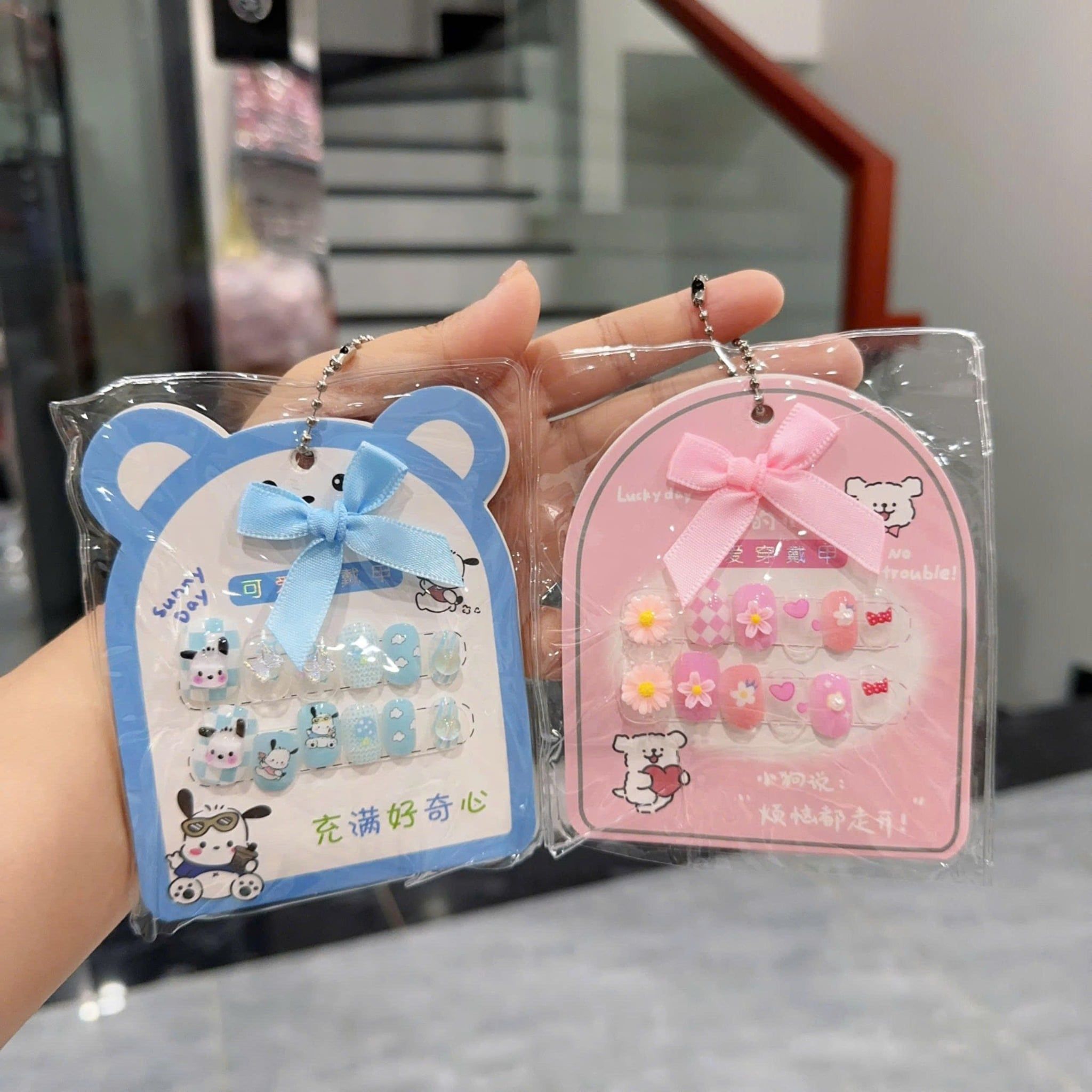 Móng giả trẻ em có charm mẫu dây nơ