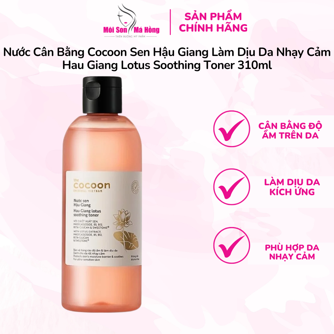 Nước Cân Bằng Cocoon Sen Hậu Giang Làm Dịu Da Nhạy Cảm 310ml Hau Giang Lotus Soothing Toner