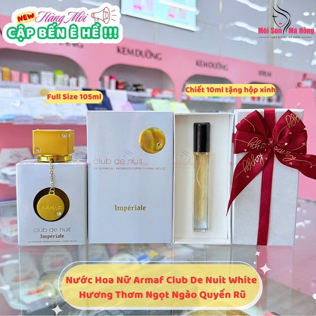 Nước hoa nữ Armaf Ladies Club De Nuit White Imperiale EDP như đóa hoa hồng xinh đẹp ẩn mình trong làn hương dịu dàng, mỗi bước đi của nàng đều ngọt ngào và toát lên vẻ yêu kiều tràn đầy năng lượng. Nồng nàn với quả lê, và quả vải ở tầng hương đầu, để truyền tải sự tinh khiết. Hương đầu của vải thiều và quả lê mang lại cảm giác nồng nàn nhưng vẫn toát lên vẻ tinh tế. Dần dần, hương hoa hồng Thổ Nhĩ Kỳ nằm dưới lớp hương gỗ, hổ phách và vani, nhẹ nhàng và quyến rũ, sang trọng và dường như sức hút đã đạt đến đỉnh điểm. Sự bí ẩn và uy quyền ẩn dưới sự giao thoa của xạ hương và Cashmeran, khiến mọi ánh mắt chỉ muốn nhìn Armaf Club De Nuit Imperiale lâu hơn một chút.