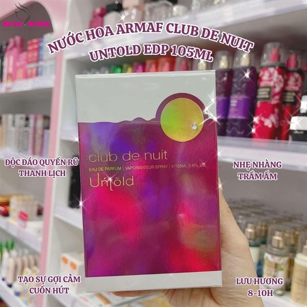 - Nước hoa nữ Armaf Club De Nuit Untold EDP 105ML nghệ thuật của hương thơm đánh thức sự quyến rũ với hương thơm lôi cuốn. Club De Nuit Untold EDP một mùi hương độc đáo, quyến rũ, hấp dẫn đến từ thương hiệu nổi tiếng Armaf, là một lựa chọn hoàn hảo cho nàng tôn lên sự gợi cảm và nữ tính của mình.