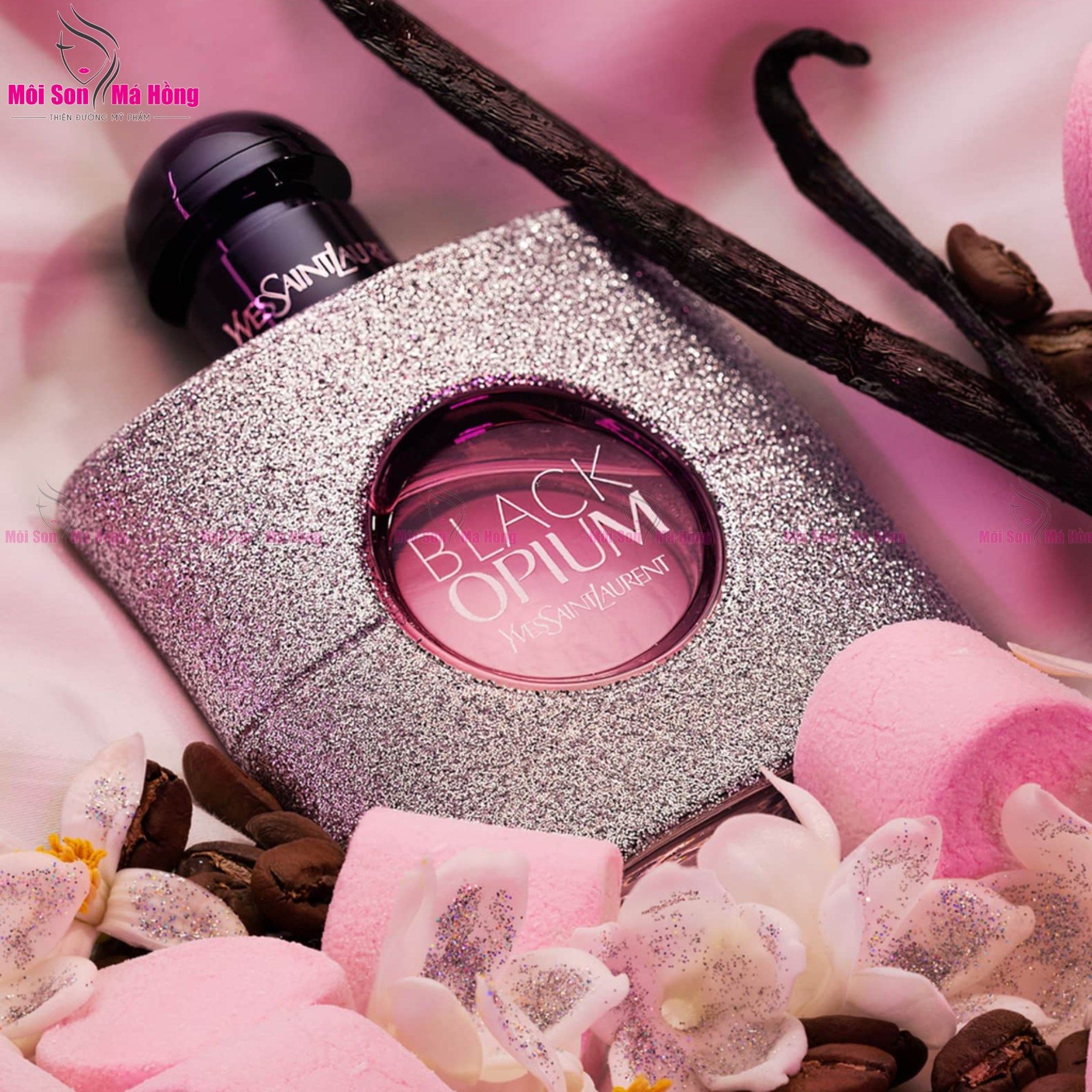 - Hương thơm đánh dấu sự giao thoa hoàn hảo giữa sự táo bạo của dòng Black Opium nguyên bản và sự rực rỡ hiện đại, thể hiện qua lớp hương đầu ngọt ngào của kẹo marshmallow và cà phê đen, hòa quyện với lớp hương giữa đầy nữ tính từ hoa cam và hợp hương đường, kết thúc với sự ấm áp, gợi cảm của xạ hương và vani Bourbon.