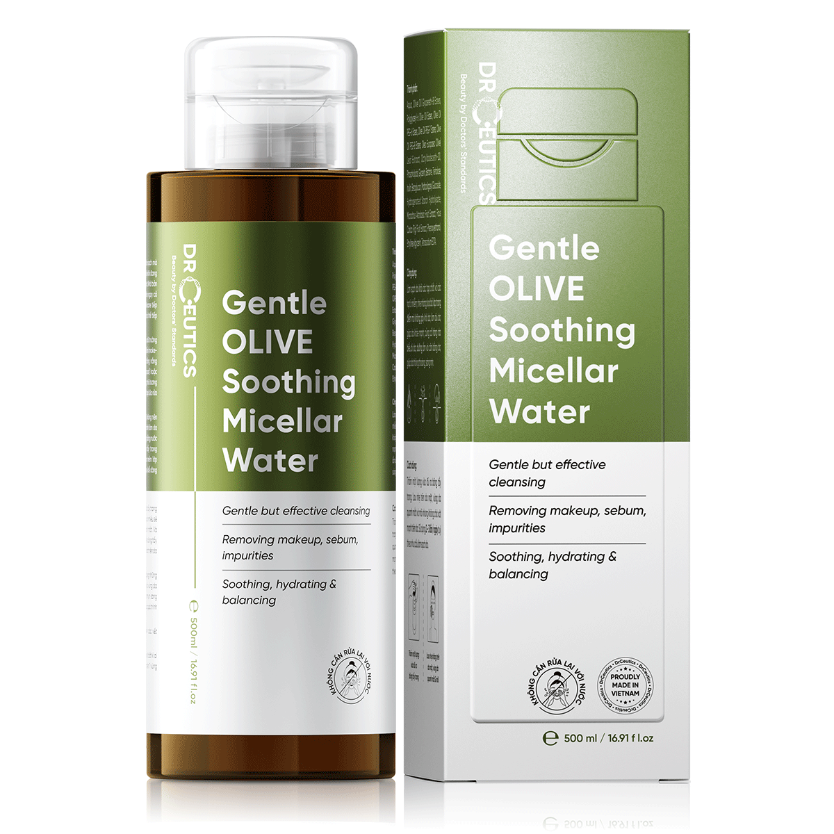Nước Tẩy Trang DrCeutics Gentle Olive Soothing Micellar Water Làm Sạch Sâu, Dưỡng Ẩm 500ml
