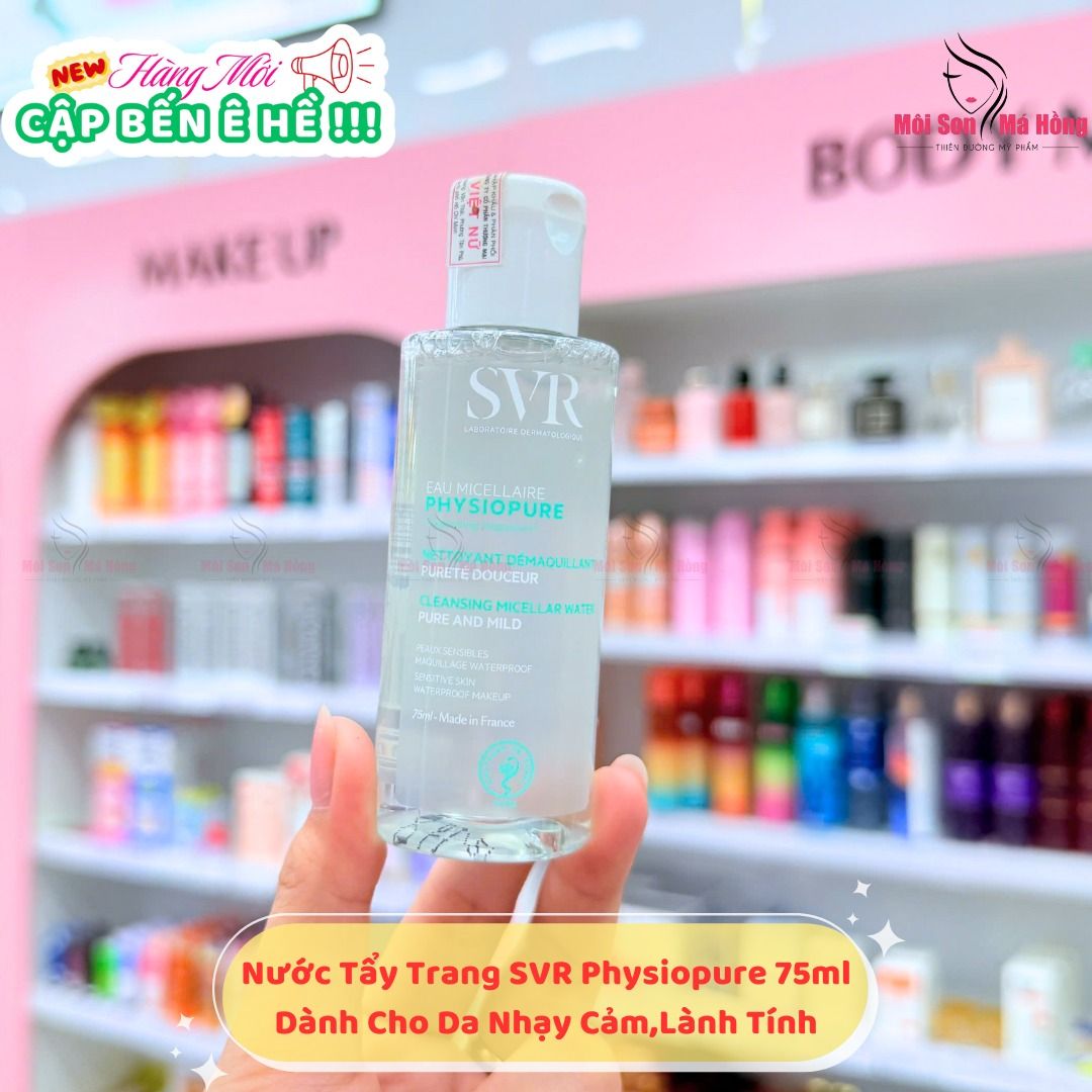 Nước Tẩy Trang SVR Cho Da Nhạy Cảm là nước tẩy trang với công nghệ Micellar và các thành phần dịu nhẹ giúp làm sạch lớp trang điểm, bụi bẩn và tạp chất cho da mà không gây khô căng da và kích ứng, đặc biệt phù hợp với làn da nhạy cảm, giúp da cảm thấy sạch mịn và dễ chịu thuộc thương hiệu dược mỹ phẩm SVR đến từ Pháp.