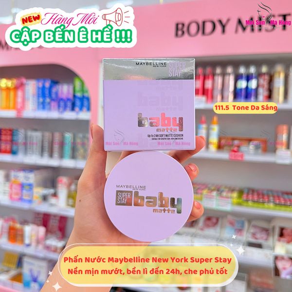 Phấn Nước Mịn Lì Maybelline New York Super Stay Baby Matte Up To 24H Soft Matte giúp mang đến lớp nền bền lì suốt 24 giờ, 1 dặm giúp da mịn lì chuẩn “baby vibe” – hiệu ứng Mịn-Matt-Mallow độc quyền, kiềm dầu hiệu quả và giúp làn da luôn tươi tắn, mịn màng cả ngày.