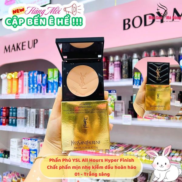 - Kiềm dầu hiệu quả: Nhờ công nghệ Micro-Finesse Perlite, phấn phủ YSL All Hours Hyper Finish giúp kiềm dầu tối ưu, ngăn ngừa tình trạng bóng nhờn và giữ cho lớp trang điểm luôn khô ráo, mịn màng suốt cả ngày dài.